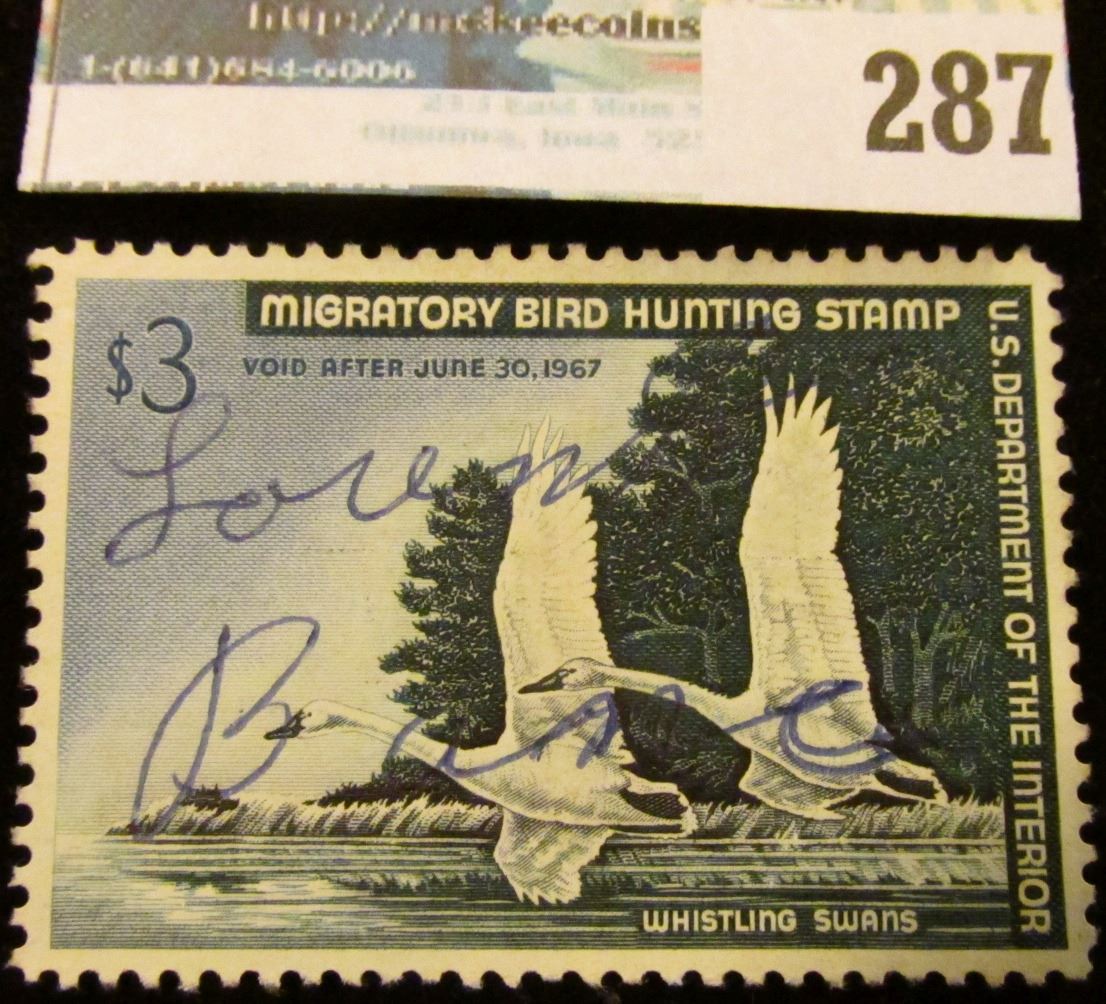 RW33 1966 Federal Migratory Bird Hunting and Conservation Stamp, signed, no gum.