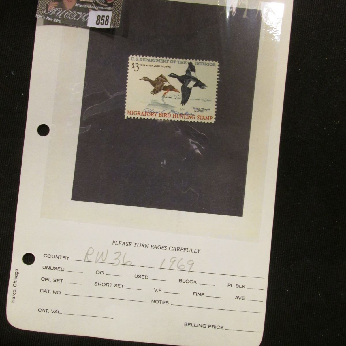 RW36 1969 U.S. Department of Agriculture Migratory Bird Stamp, Fine, signed.