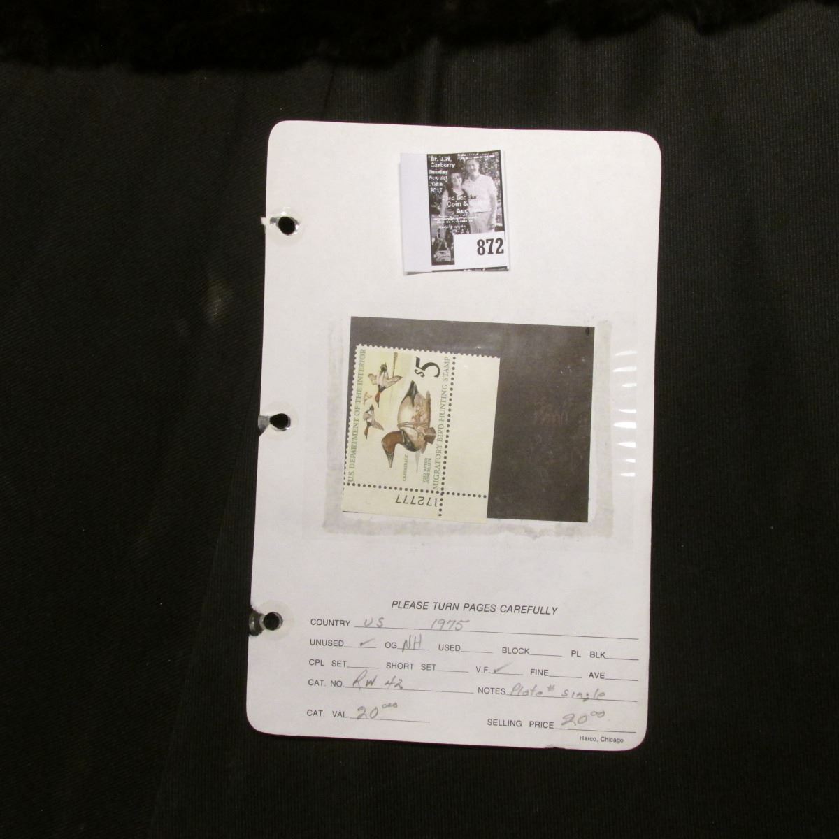 RW42 1975 Federal Migratory Bird Hunting and Conservation Stamp, not hinged. unsigned, not hinged, Plate # single.