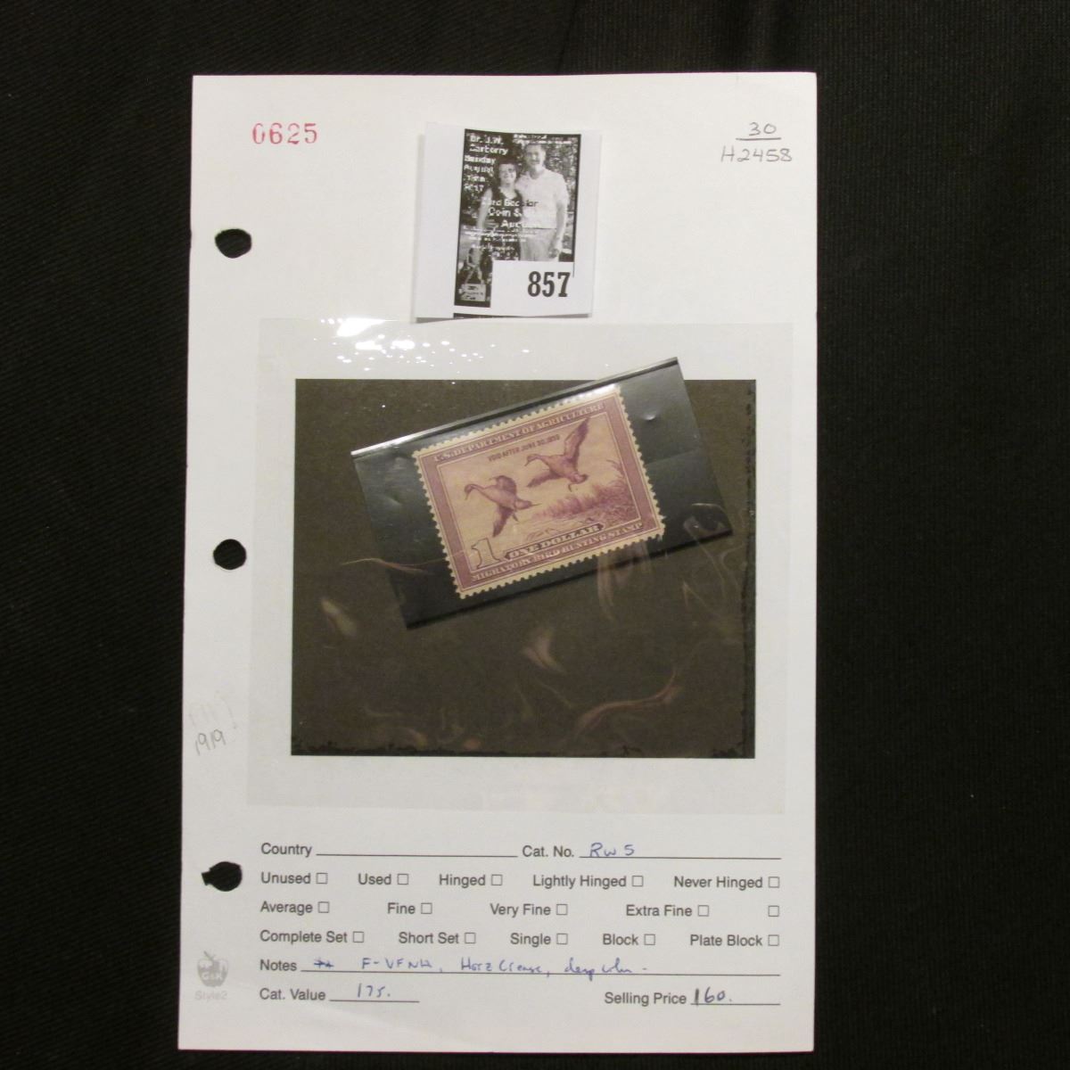 RW5 1938 Federal Migratory Bird Hunting and Conservation Stamp, not signed, OG, light crease,