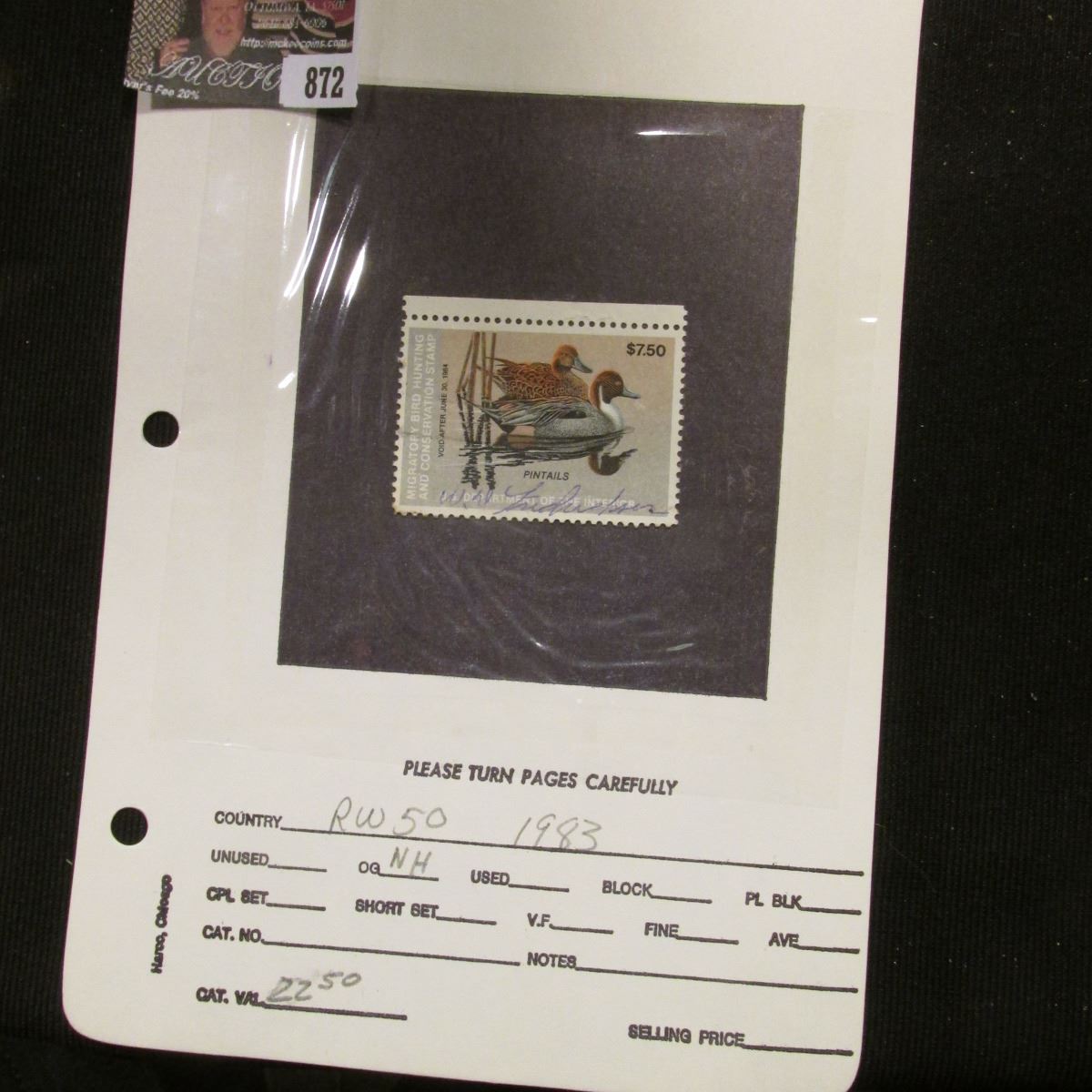 RW50 1983 U.S. Department of Agriculture Migratory Bird Stamp, Fine, signed, Partial Gum.