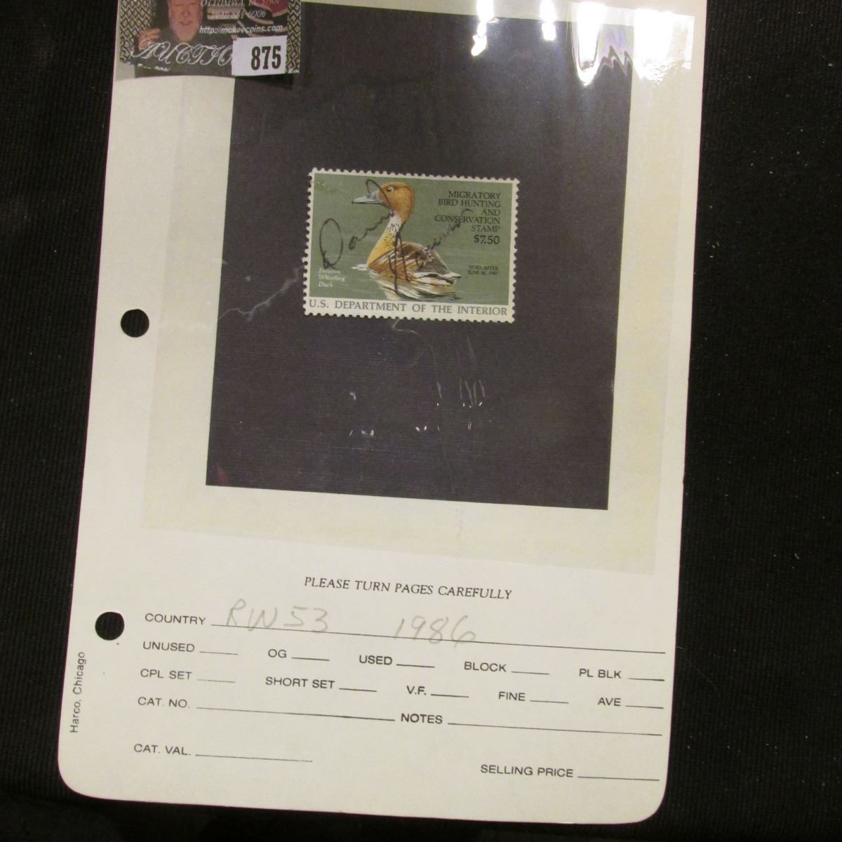 RW53 1986 U.S. Department of Agriculture Migratory Bird Stamp, Fine, signed.
