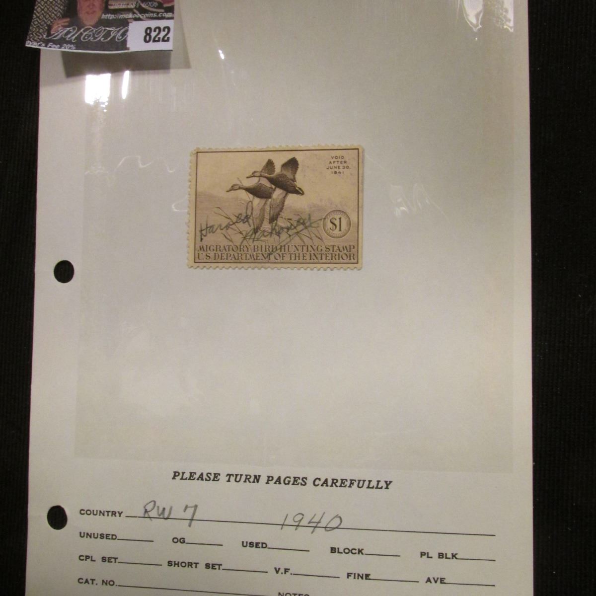 RW7 1940 Signed U.S. Department of Agriculture Migratory Bird Stamps.