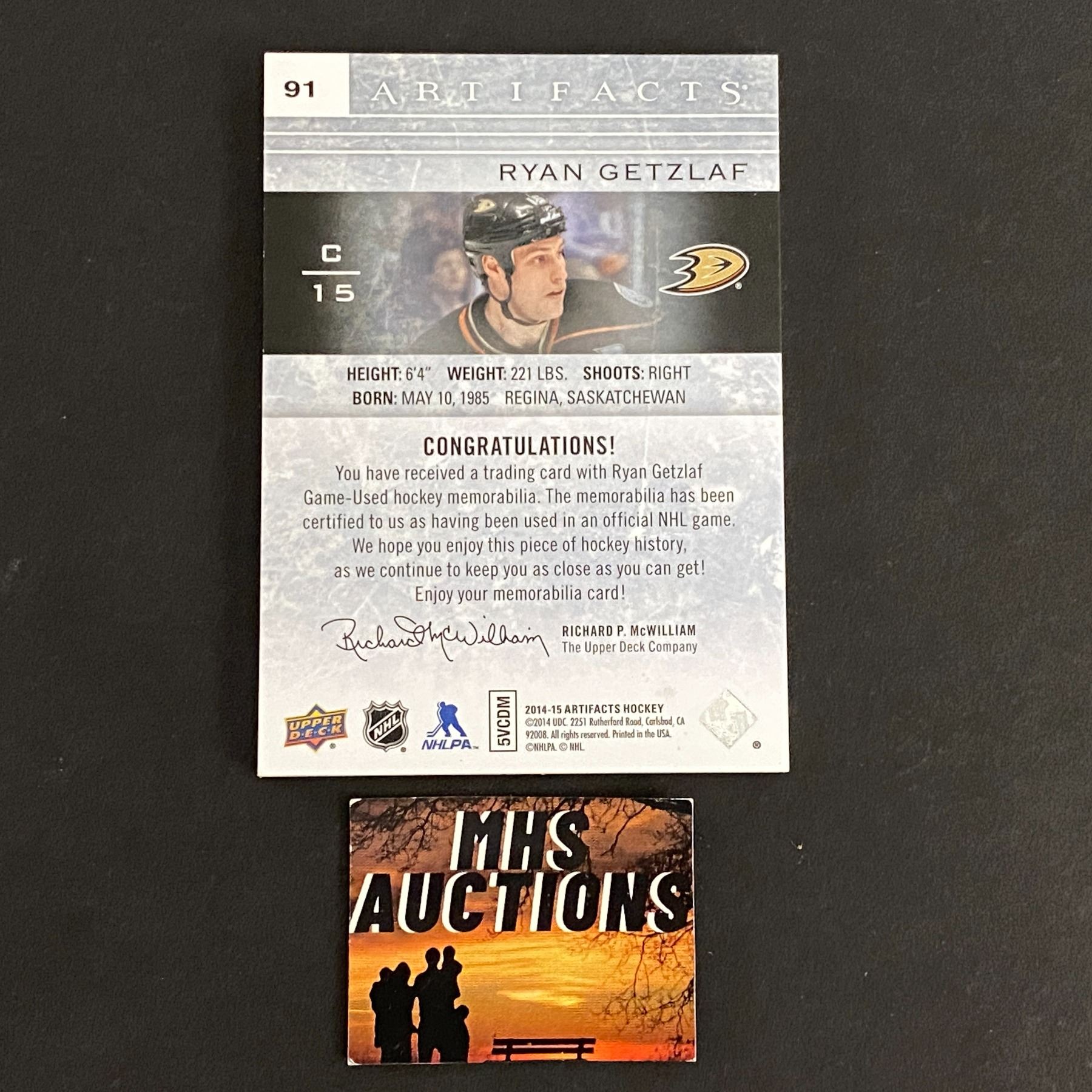 RYAN GETZLAF 2014-15 ARTIFACTS PATCH HOCKEY CARD