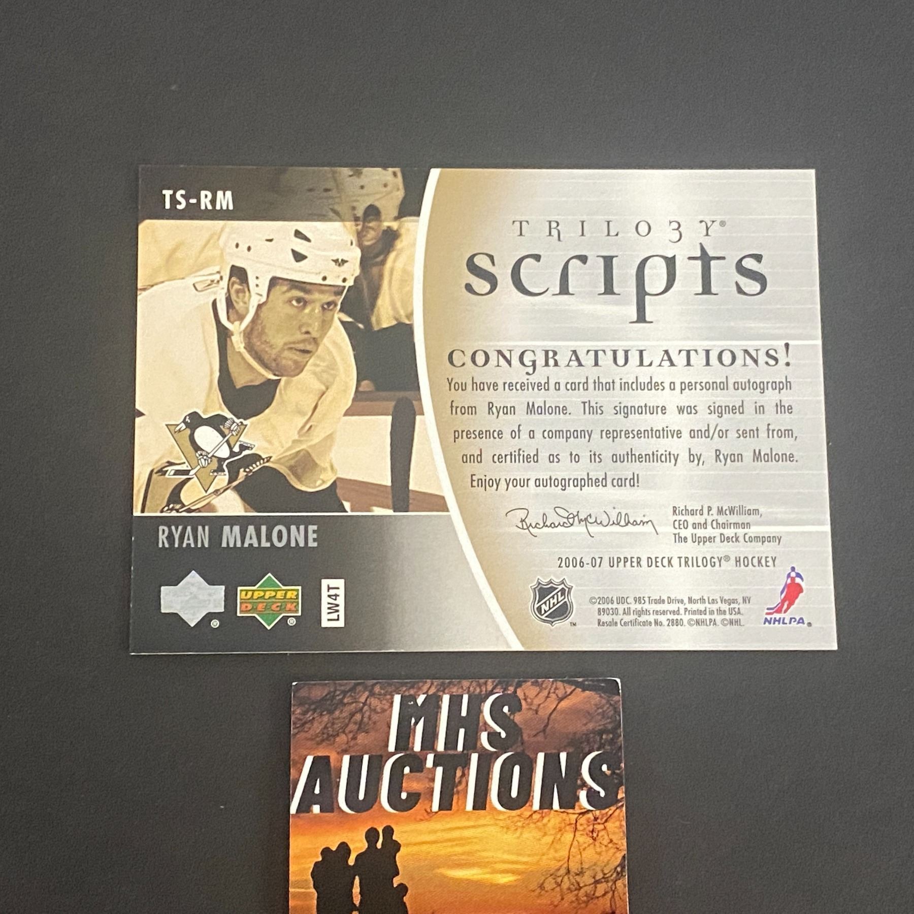 RYAN MALONE PITTSBURGH PENGUINS AUTOGRAPH CARD