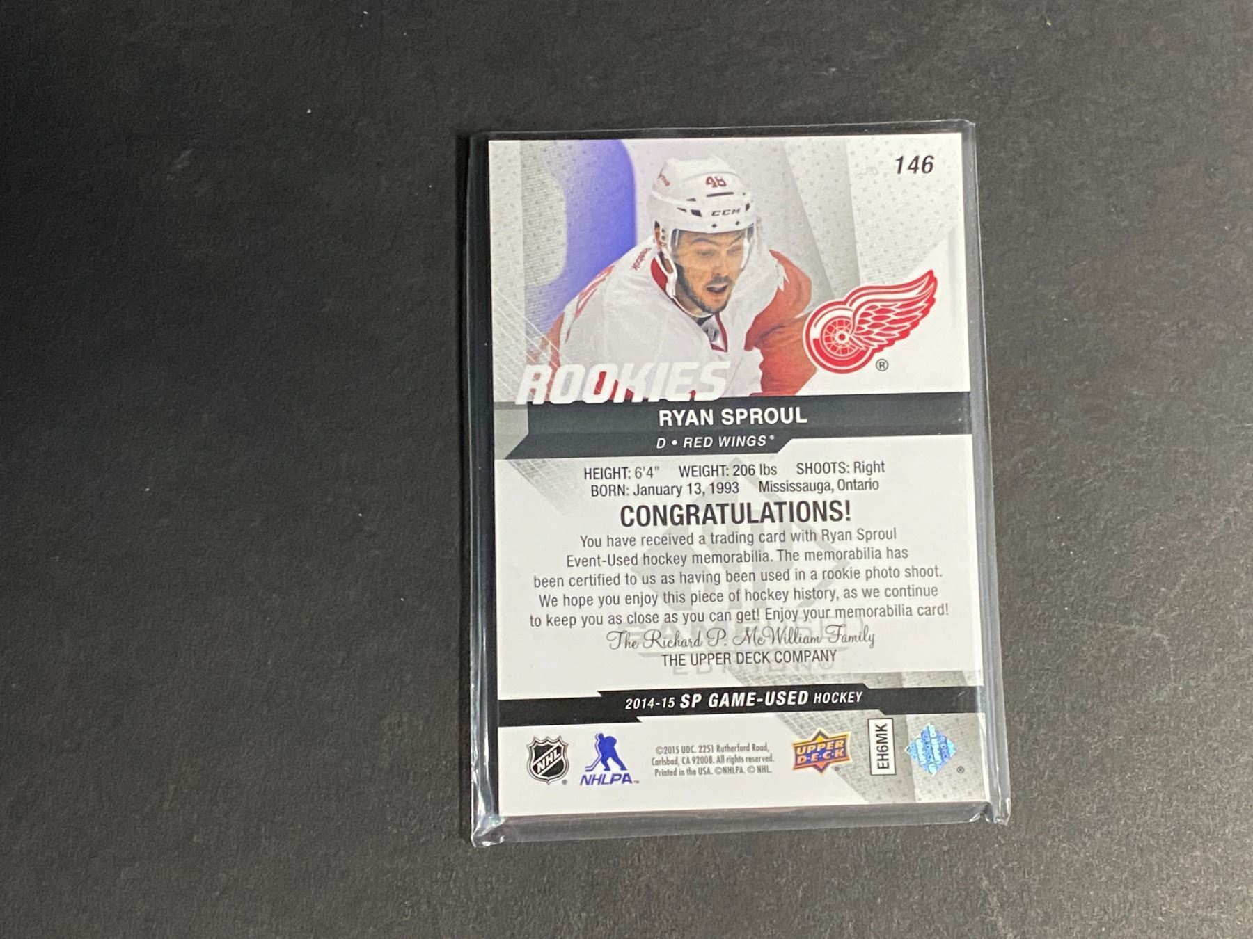 RYAN SPROUL DETROIT RED WINGS JERSEY PATCH CARD EXCELLENT PATCH #D/99