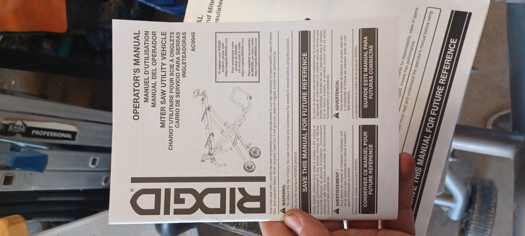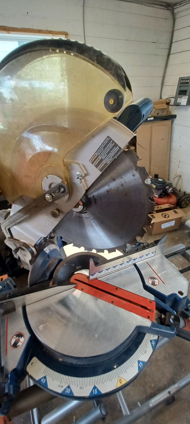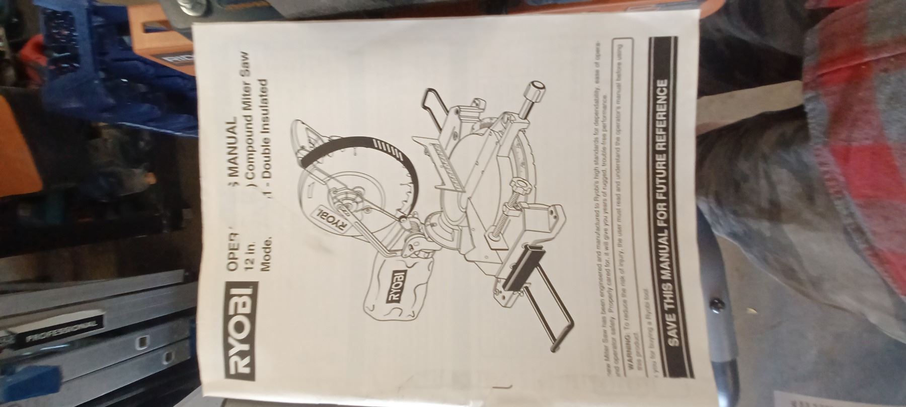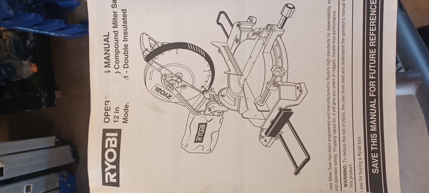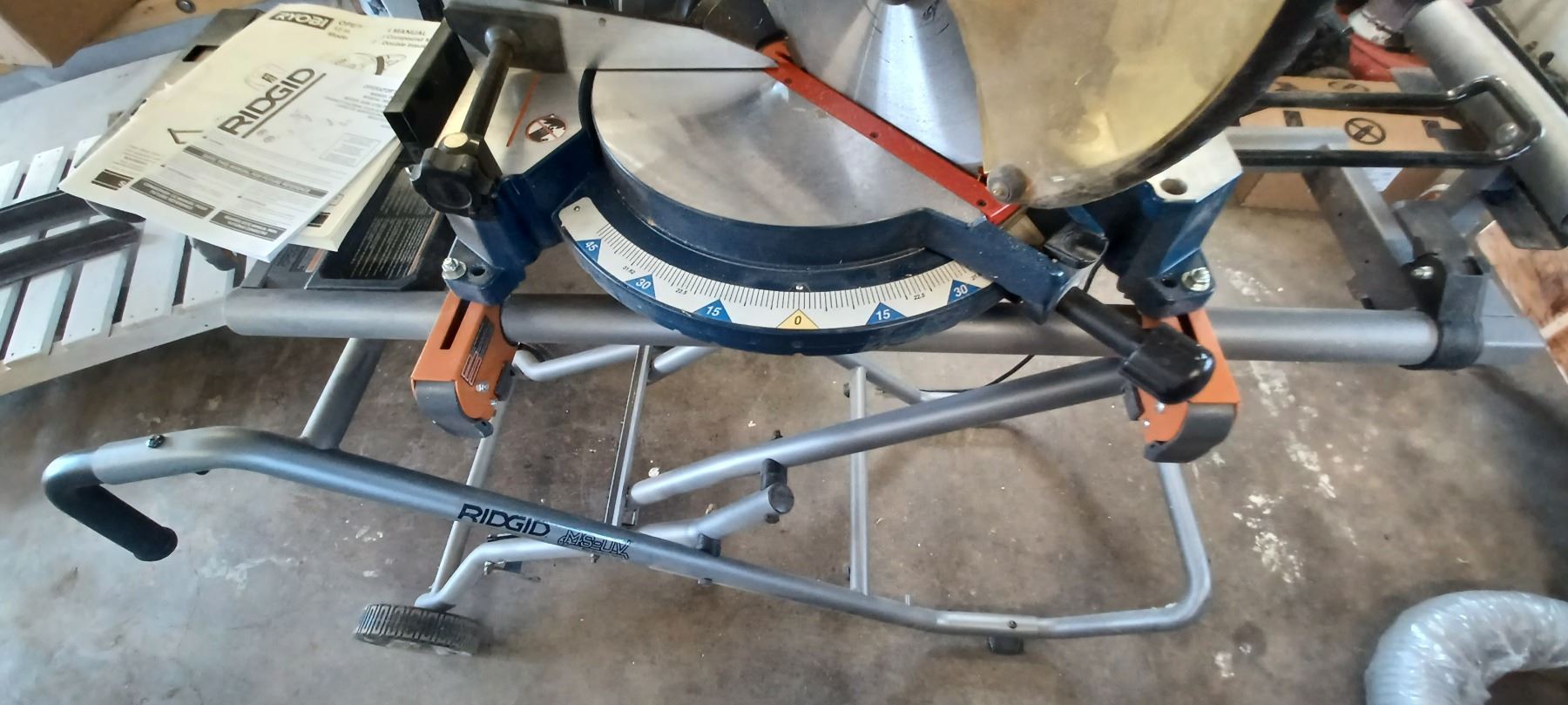 RYOBI 12" COMPOUND MITRE SAW COMES WITH RIDGID MITRER SAW UTILITY STAND-GOOD SHAPE