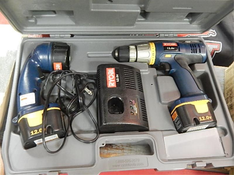 RYOBI 12 VOLT DRILL & FLASH LIGHT SET