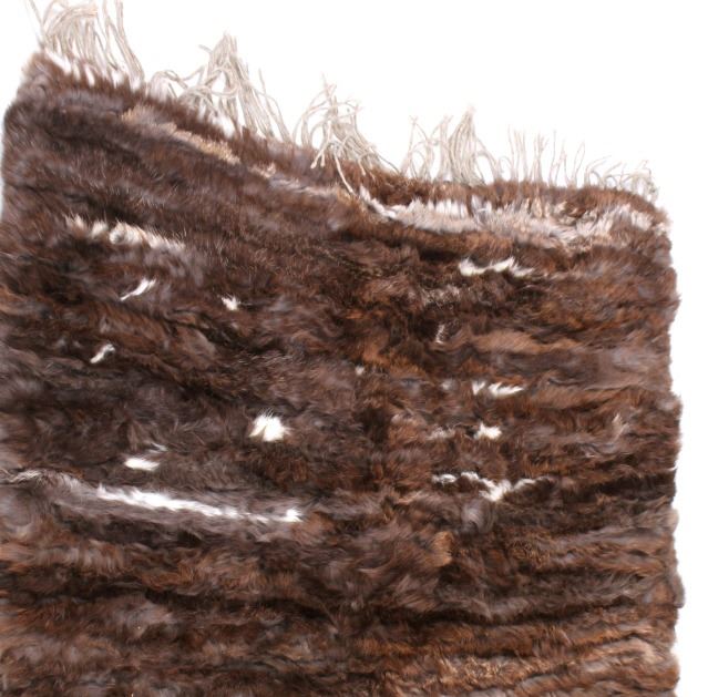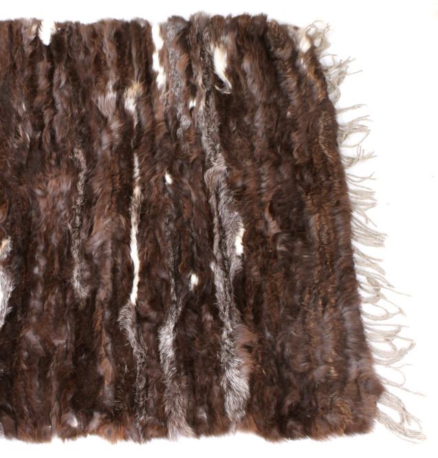 This lot features a unique rabbit fur rug. The rug was originally purchased in 1961 in Taos Pueblo. It was made form rabbit fur harvested during winter. The rug was constructed by a professional taxidermist and does not appear to be experiencing hair loss. The rug is in good condition for its age. Measures: 57" L x 33" W