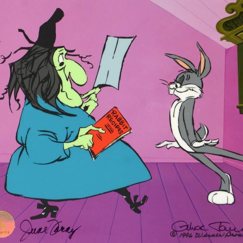 "Rabbit Recipes" is a limited edition animation cel with hand painted coloring on sericel outline. The piece is numbered hand signed by Chuck Jones (1912-2002) and includes a Certificate of Authenticity! Measures Approx: 12.5" x 10.5"
