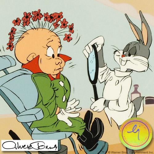 Own this amazing piece based on the original line image hand drawn and hand-inked on paper by Chuck Jones (1912-2002)! "Rabbit of Seville III" is a limited edition animation cel from a sold out edition with hand painted coloring on sericel outline, numbered and hand signed by Chuck Jones. The sericel comes with a brilliant full-color background. Includes Certificate of Authenticity! Measures approx. 13.5" x 16.5" (sericel and background).