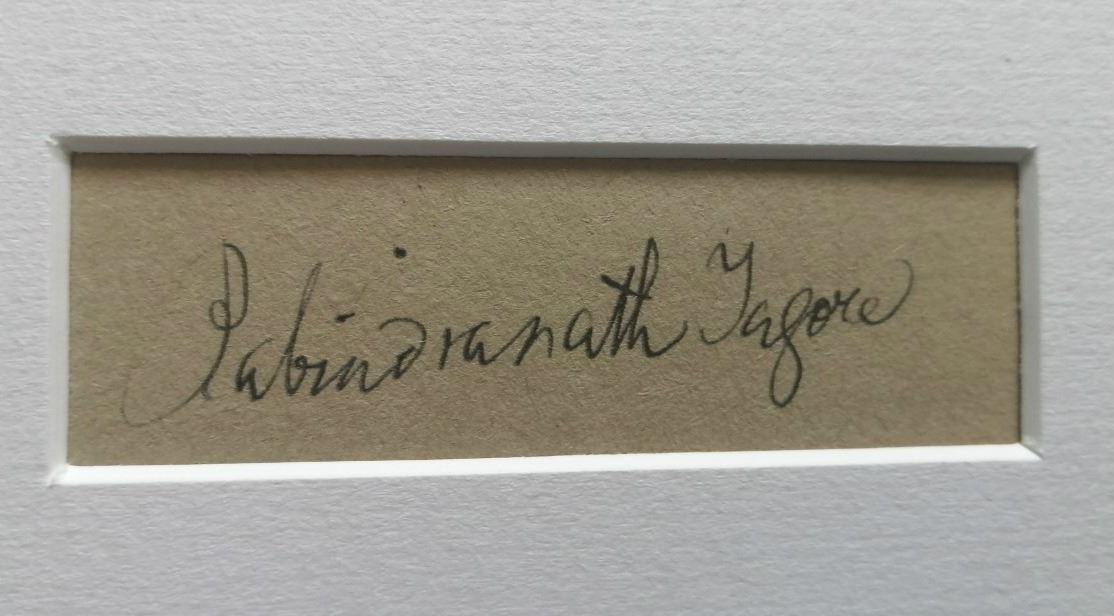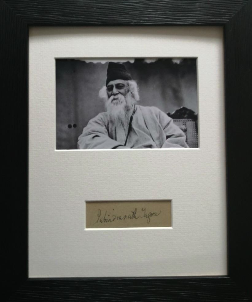 Indian Poet, Nobel Prize winner for Literature. Autograph, mounted and framed in wood, and supplied with coa.