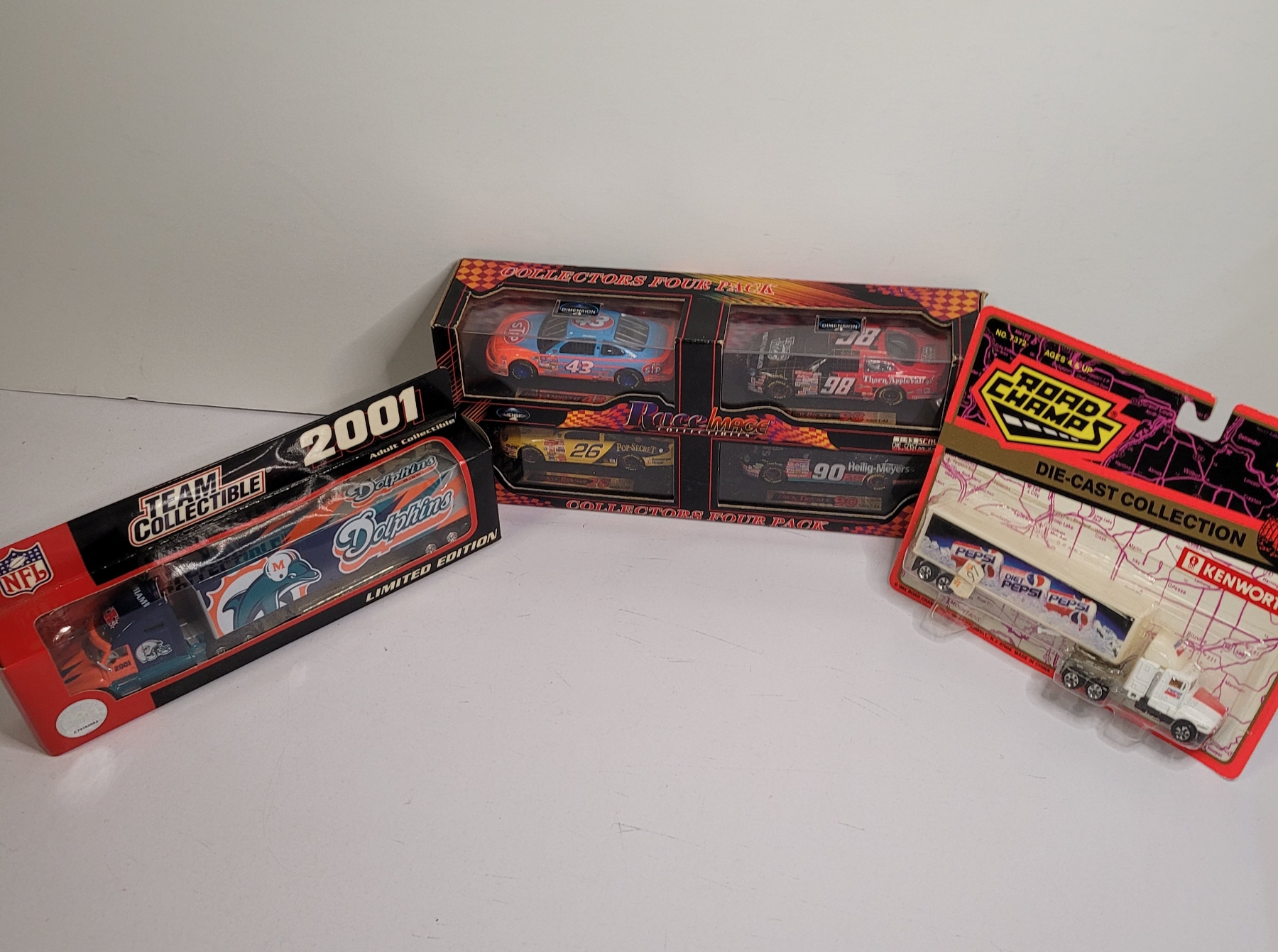 Race Images Collectors 4 Pack, Die-Cast Road Champs Kenworth Tractor Trailer And NFL 2001 Tractor Trailer