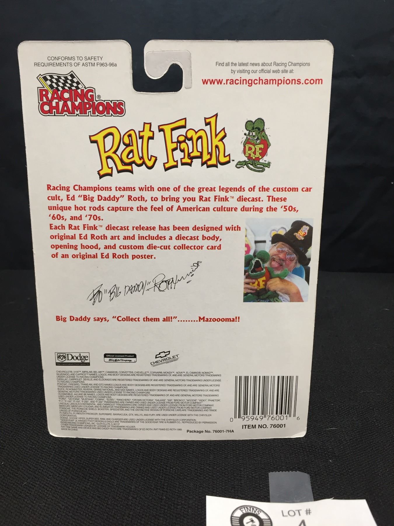 Racing Champions Rat Fink Die Cast with Figure. Mod Rods. Ed Big Daddy Roth.1:64 Scale In Original Sealed Package