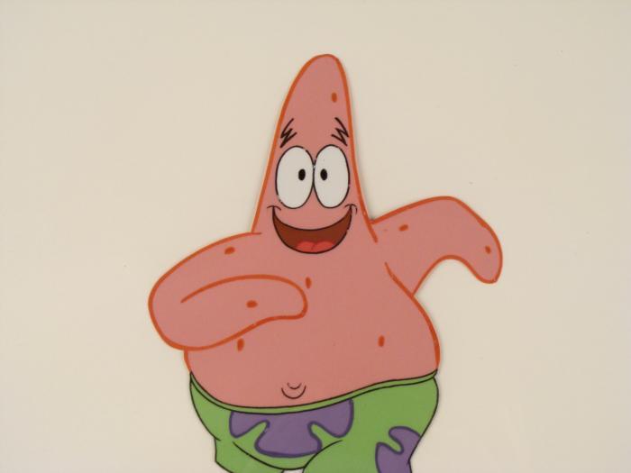 This original animation cel is from the Nickelodeon TV show SpongeBob Squarepants. The story takes place under the deep blue sea in Bikini Bottom, where SpongeBob resides. SpongeBob, who is a yellow, porous sponge, is your typical happy-go-lucky character, as he is always cheerful and enjoys making people laugh. Patrick Star, SpongeBob's neighbor who is a starfish, is your average children's show idiot, as he boasts knowing nothing and is often getting himself into ridiculous situations. Between the homes of these two lies the home of the miserable Squidward, a squid, who is known for being grouchy and playing tricks on SpongeBob and Patrick. Both SpongeBob and Squidward work at the Krusty Krab, a fast food business run by the greedy money-loving Mr. Krabs, a crab, the arch rival of the evil, possibly misunderstood, Plankton. Another neighbor, Sandy Cheeks, an athletic squirrel who normally wears an astronaut's space suit, was introduced in "Tea at the Treedome." She spends most of her time inventing and experimenting. Is Patrick racing someone?Original Production Animated Cel Overall Size of Cel: 10 1/2" x 12 1/2" Very Good ConditionThis is an original hand-painted cel set-up used in the production of an episode of "SpongeBob SquarePants." Each one-of-a-kind set-up represents a slight change in position of the characters. When individually photographed and projected in rapid succession, the images appear to move.