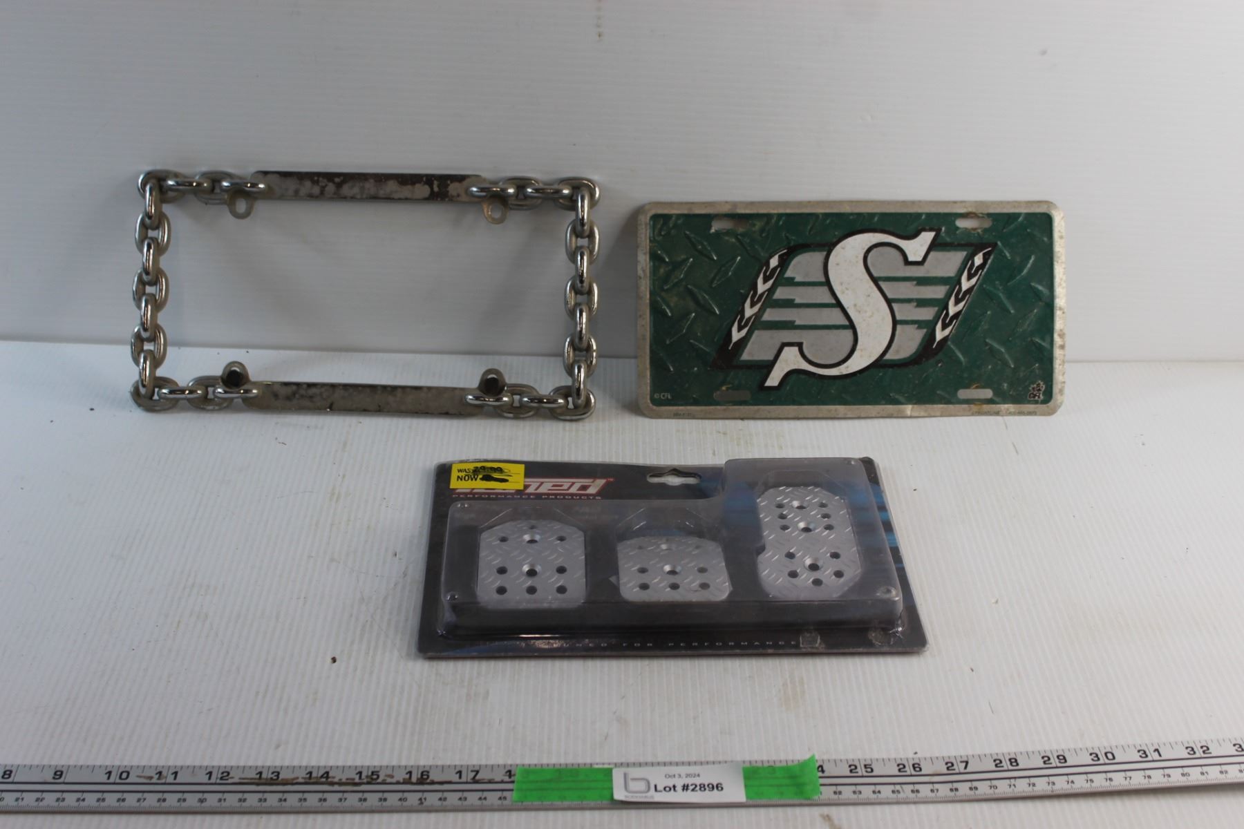 Racing Pedal Pad Set, Car Plate Chain Frame and Roughriders Car Plate