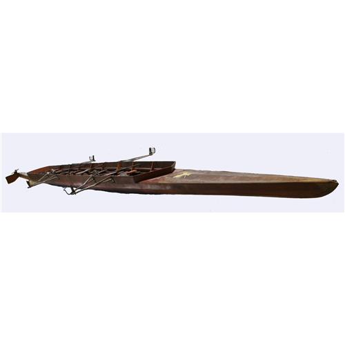 Racing Scull with Yale Insignia written on it. 37 feet long. Original footings and interior. Looks to be circa 1930's. Good overall condition.