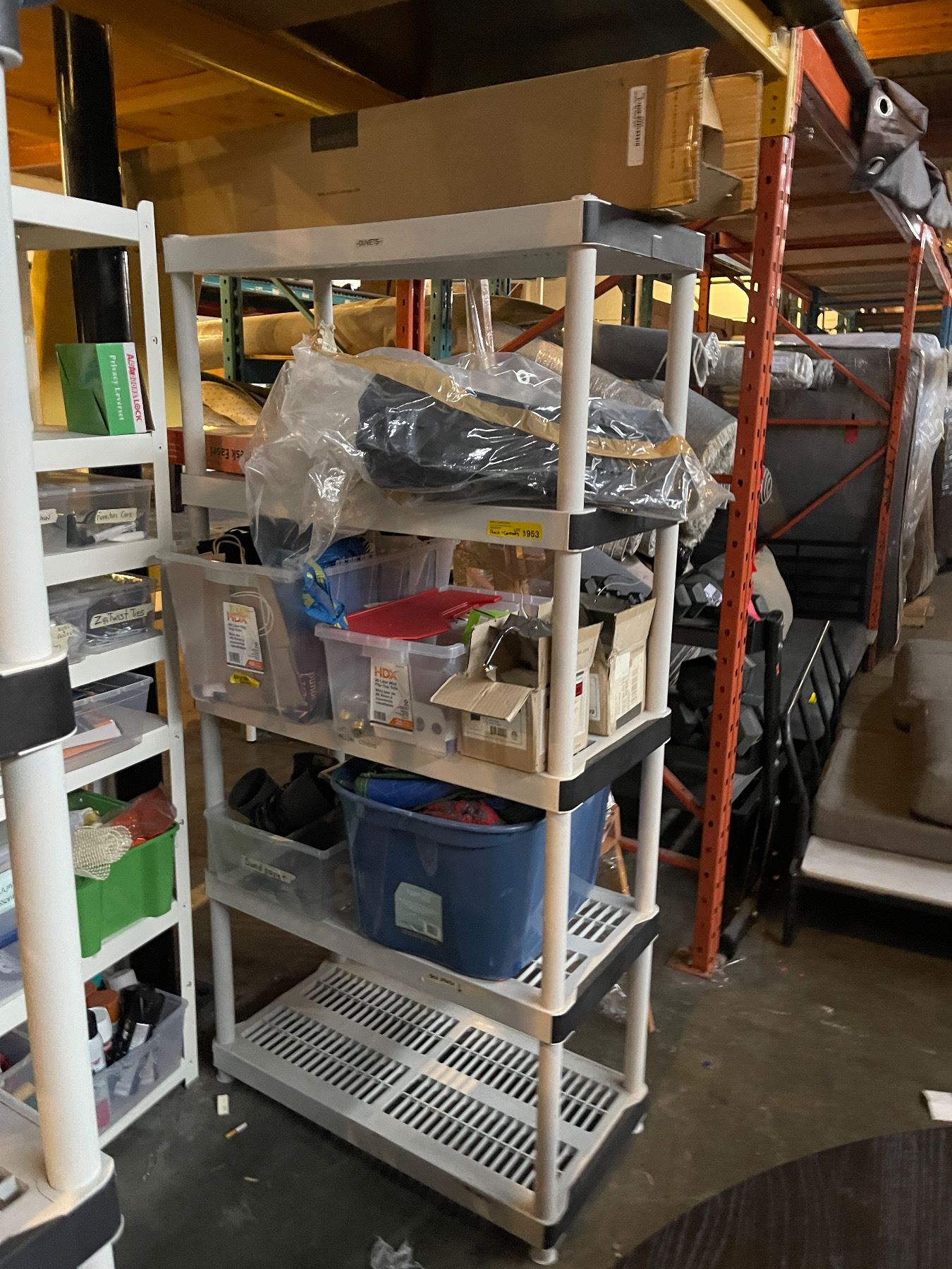 Rack & Contents - Includes Light Fixtures, Scuba Flippers, Moving Blankets, Etc.