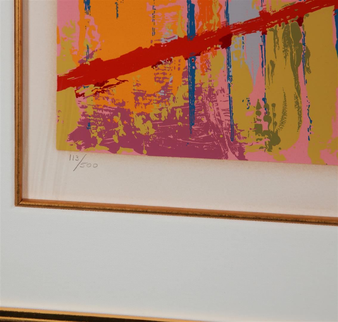 This limited edition #113 of 500 serigraph is pencil signed by world famous artist LeRoy Neiman. LeRoy Neiman was an American artist known for his brilliantly colored, expressionist paintings and screen prints of athletes, musicians, and sporting events. 45" x 52" framed.