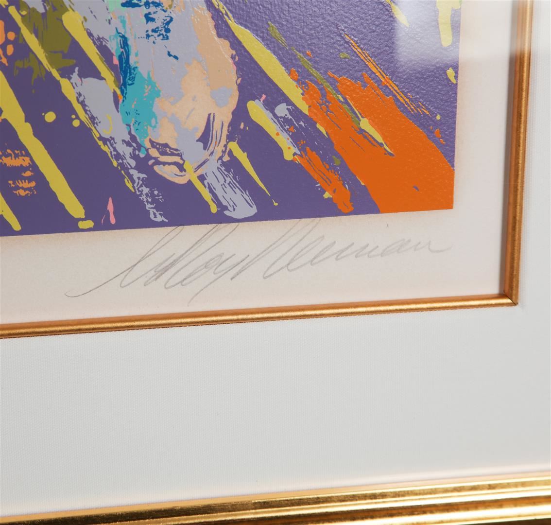This limited edition #113 of 500 serigraph is pencil signed by world famous artist LeRoy Neiman. LeRoy Neiman was an American artist known for his brilliantly colored, expressionist paintings and screen prints of athletes, musicians, and sporting events. 45" x 52" framed.
