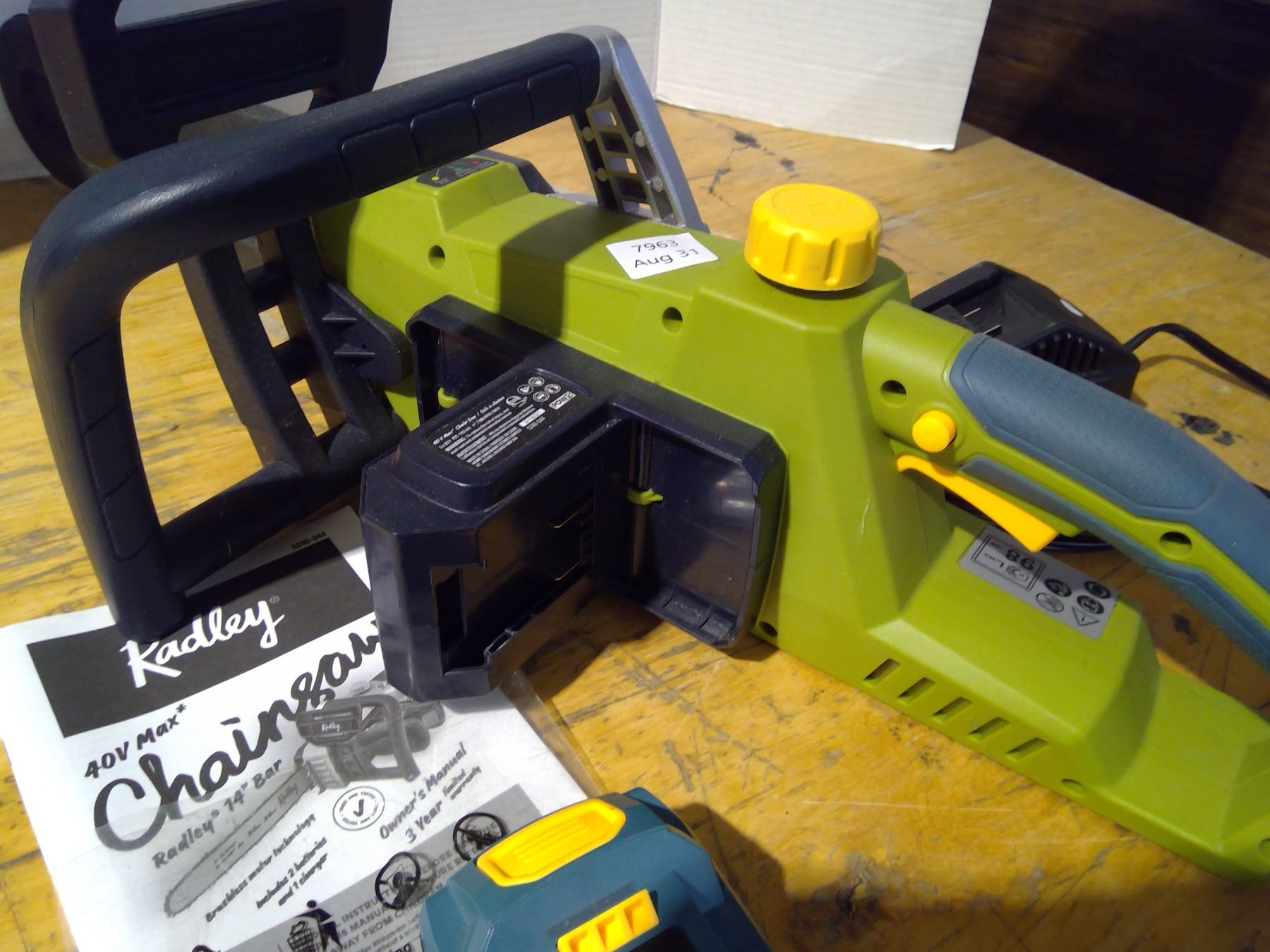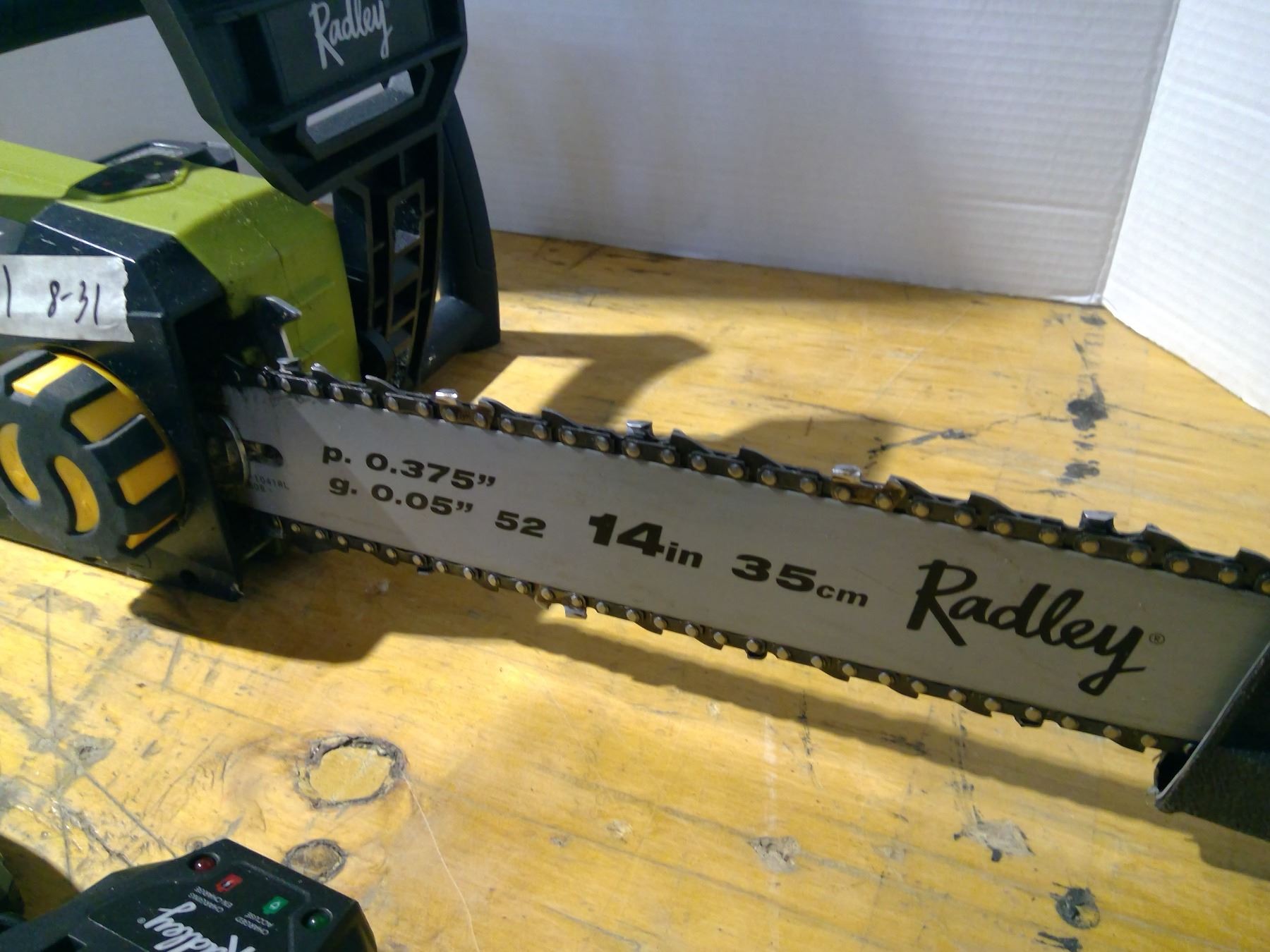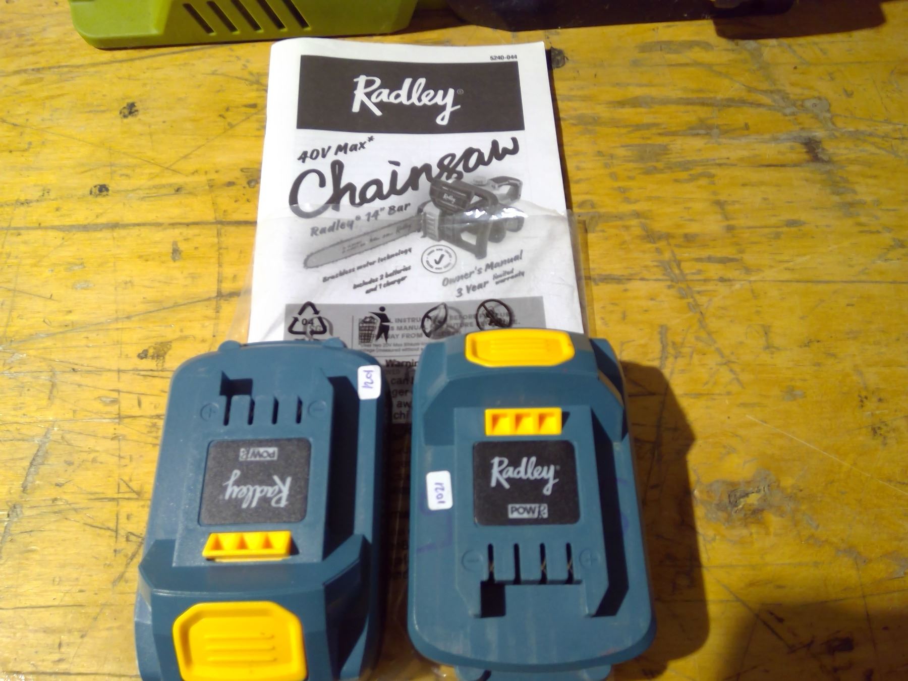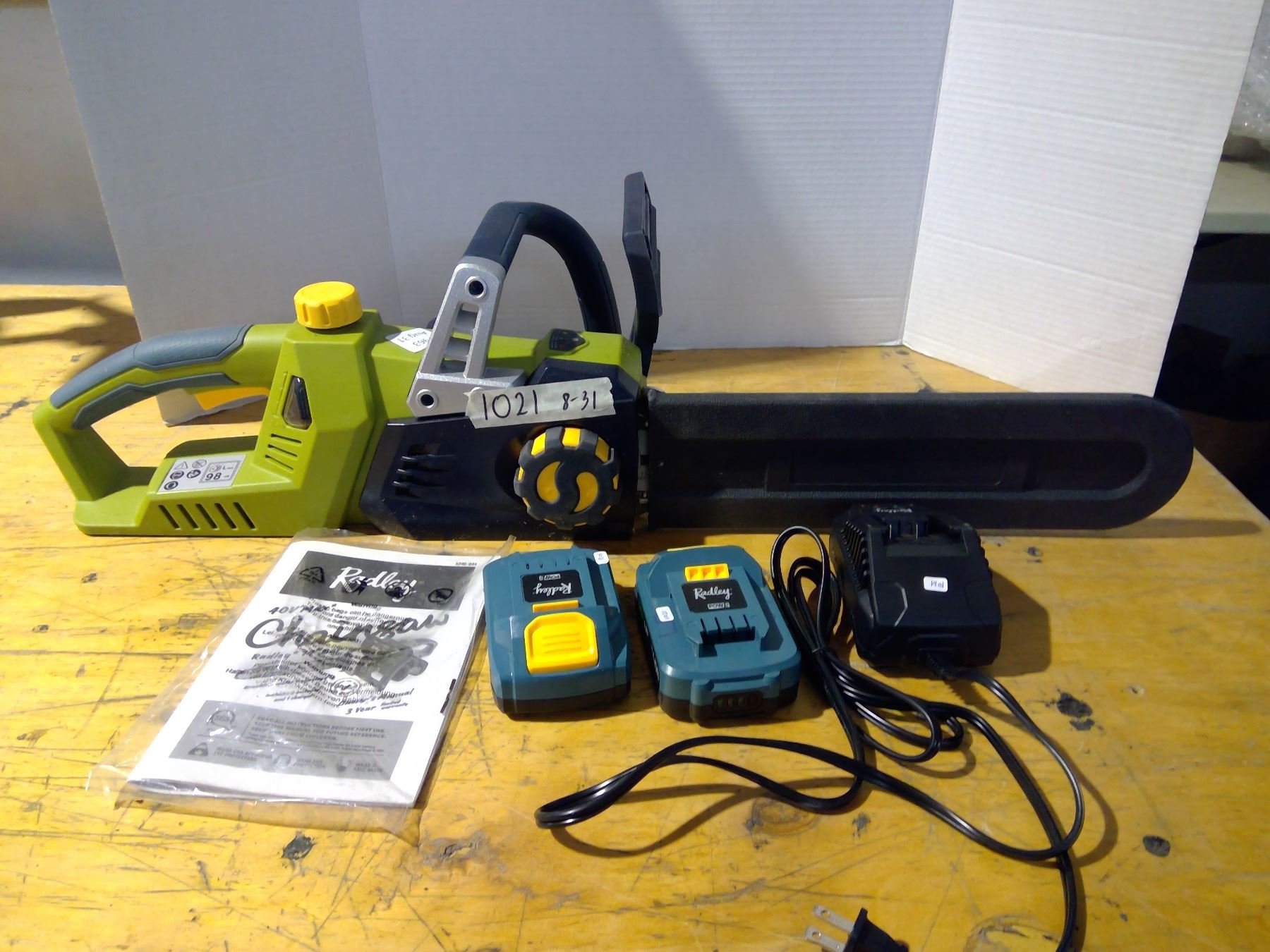 RadLy 40V Max ChainSaw 14"bar 2 battries, owner manual, Charger Battery have cheek light
