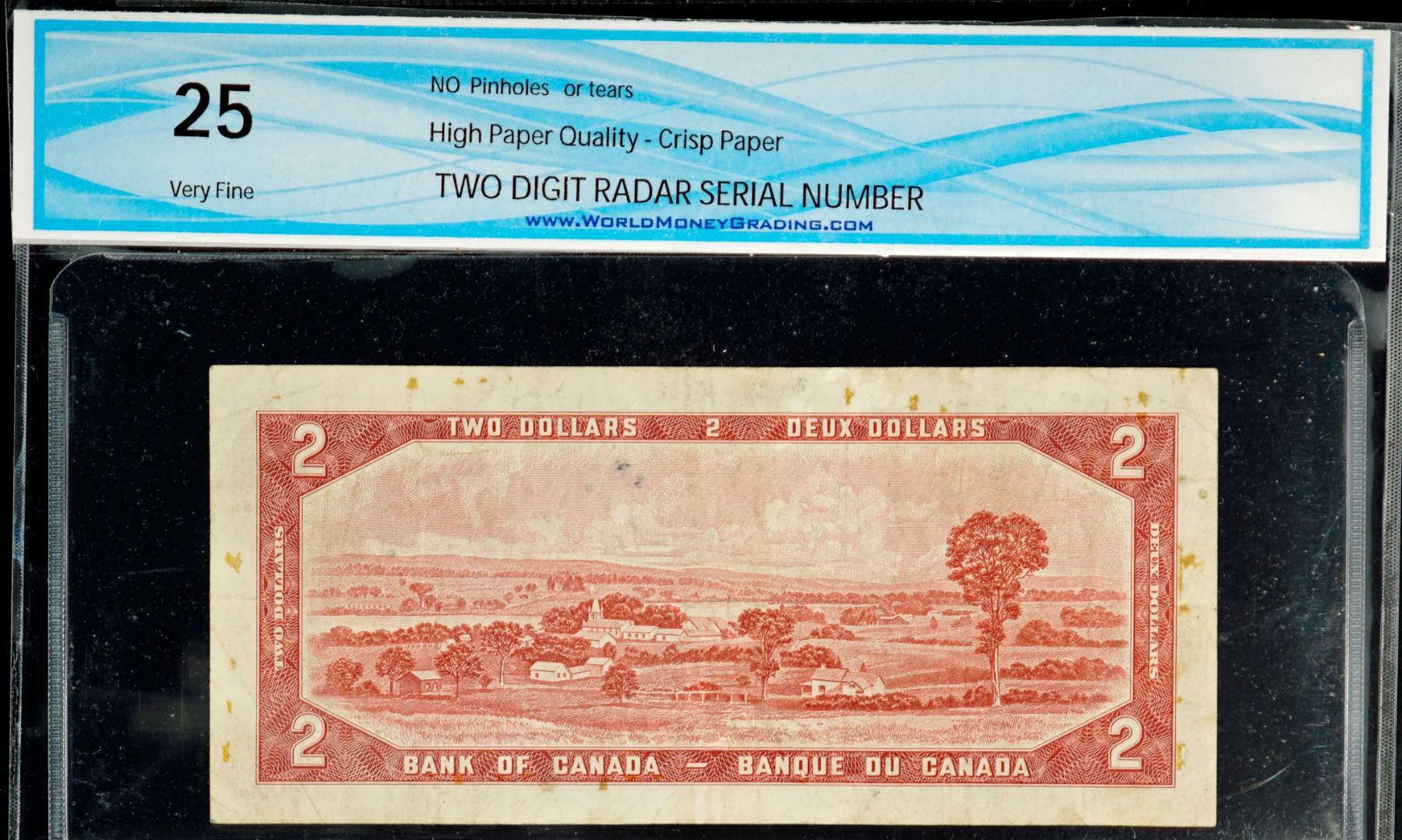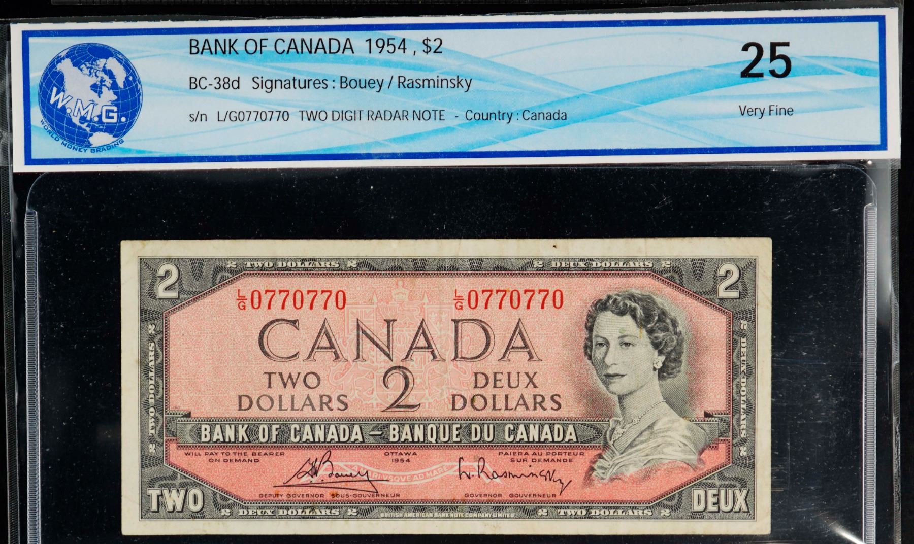 Radar; 1954 $2 BC-38d #L/G0770770 VF with small stains on back. 2 Digit Radar.