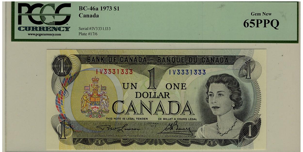 Radar 1973 $1 BC-46a IV3331333 PCGS UNC65PPQ