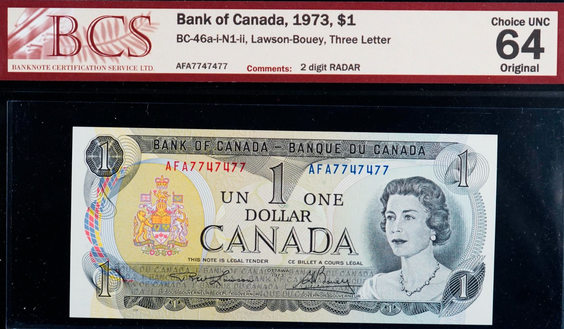 Radar; 1973 $1 BC-46a-i 2 Digit Radar #AFA7747477 BCS Choice Uncirculated-64.