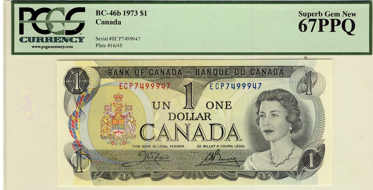 Radar 1973 $1 BC-46b ECP7499947 PCGS UNC67PPQ