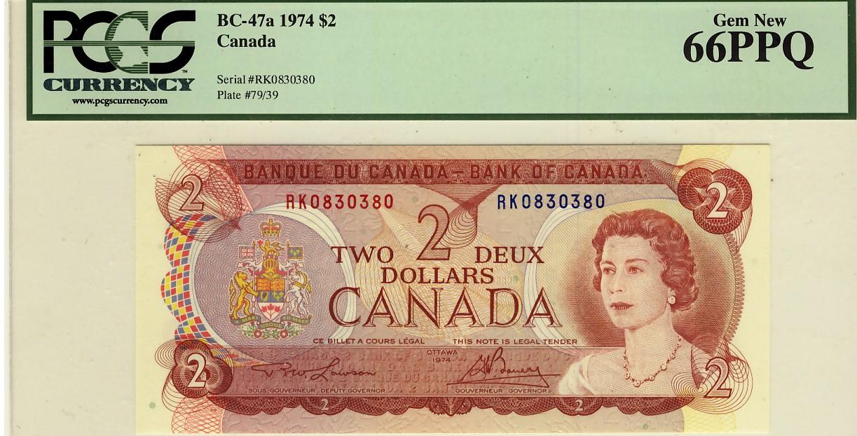 Radar 1974 $2 BC-47a RK0830380 PCGS UNC66PPQ