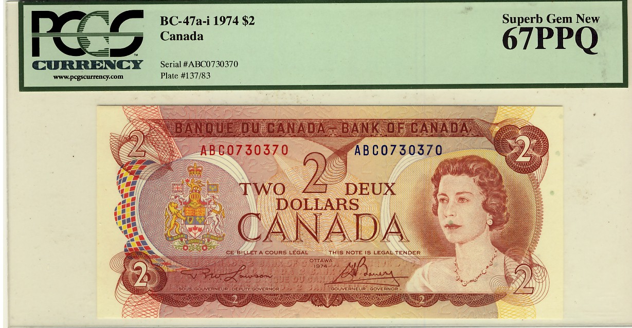 Radar 1974 $2 BC-47a-i ABC0730370 PCGS UNC67PPQ