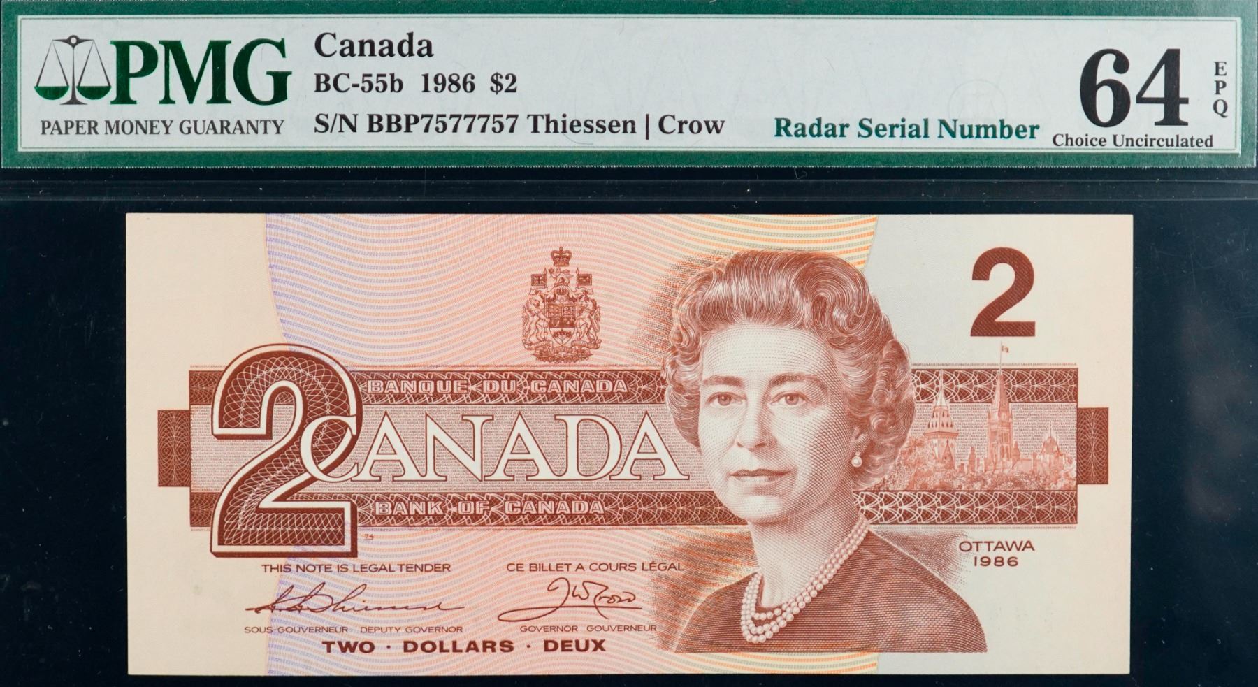 Radar; 1986 $2 BC-55b 2 Digit Radar #BBP7577757 PMG Choice Uncirculated-64EPQ.