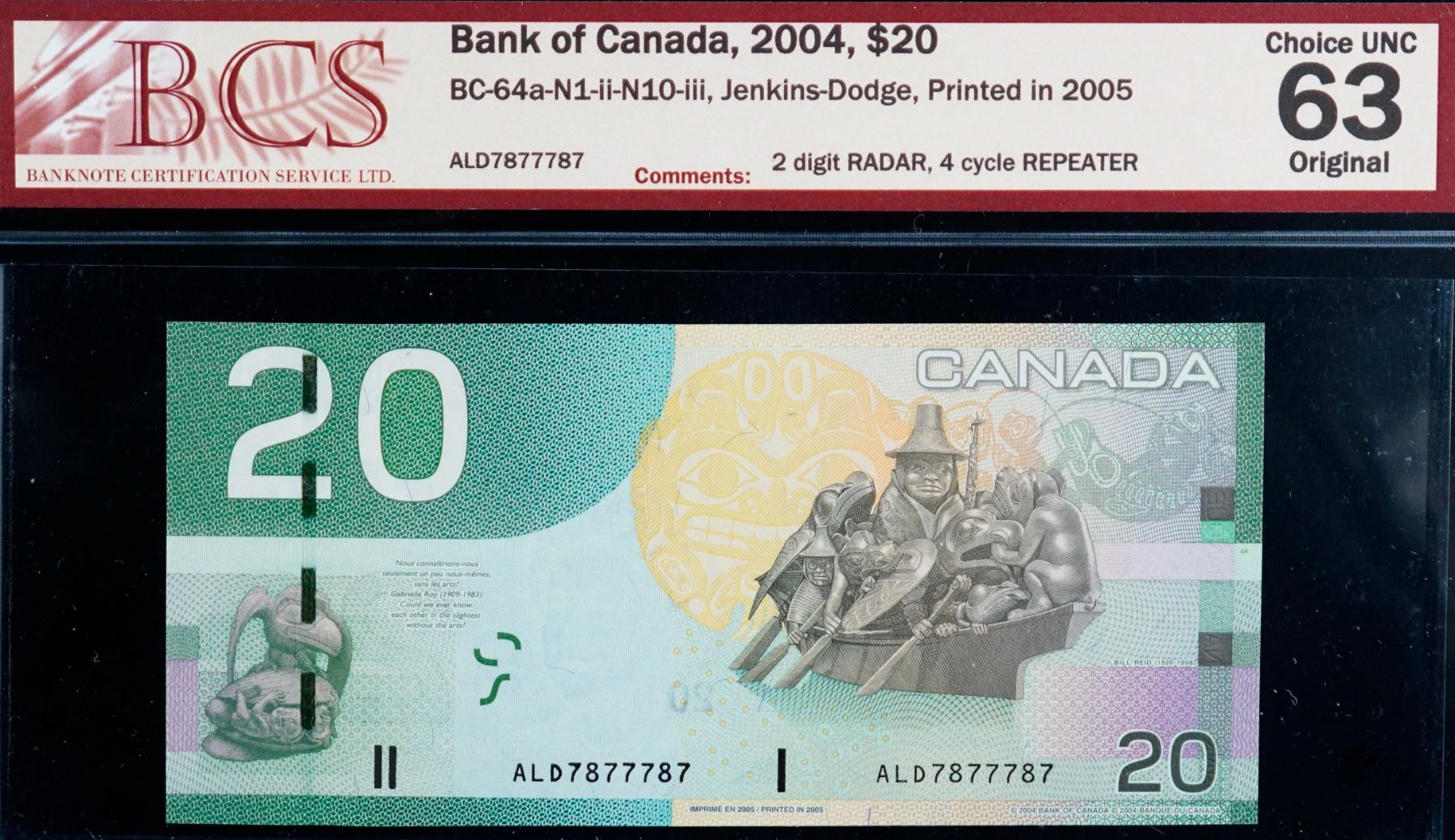 Radar; 2004 $20 BC-64a 2 Digit Radar #ALD7877787 BCS Choice Uncirculated-63.