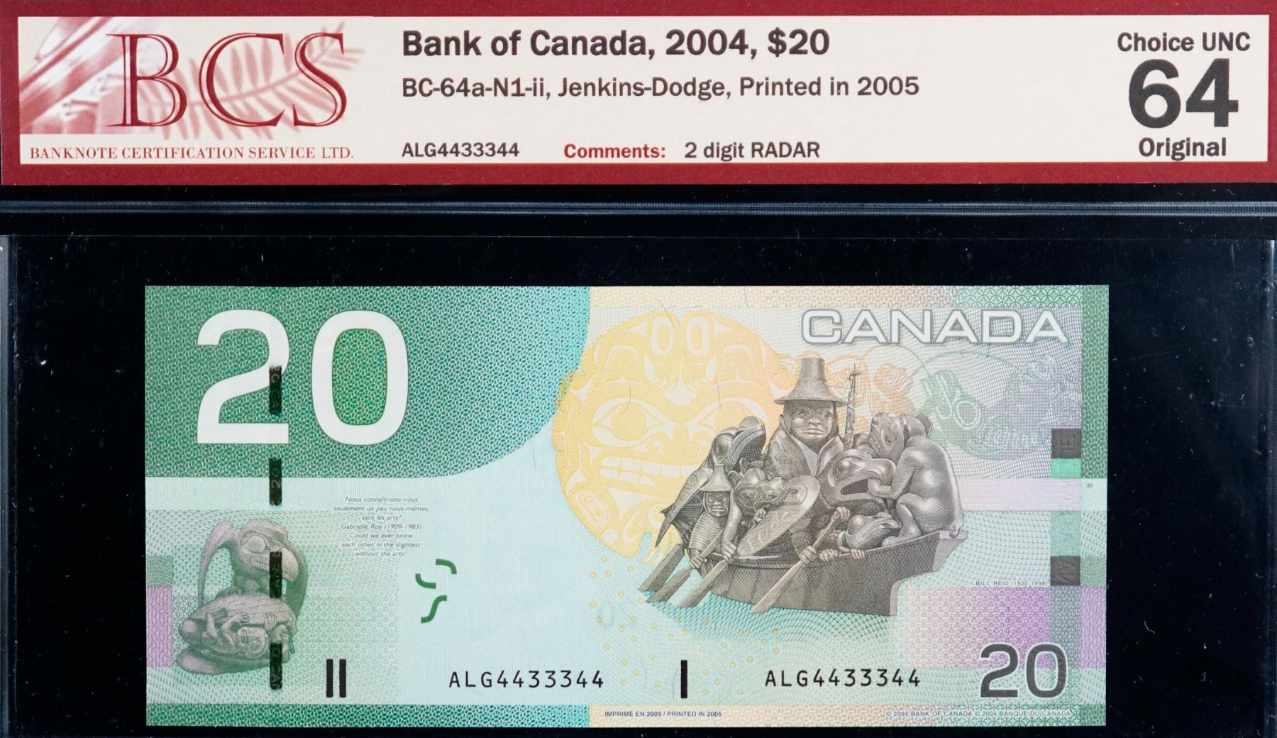 Radar; 2004 $20 BC-64a 2 Digit Radar #ALGood-4433344 BCS Choice Uncirculated-64.