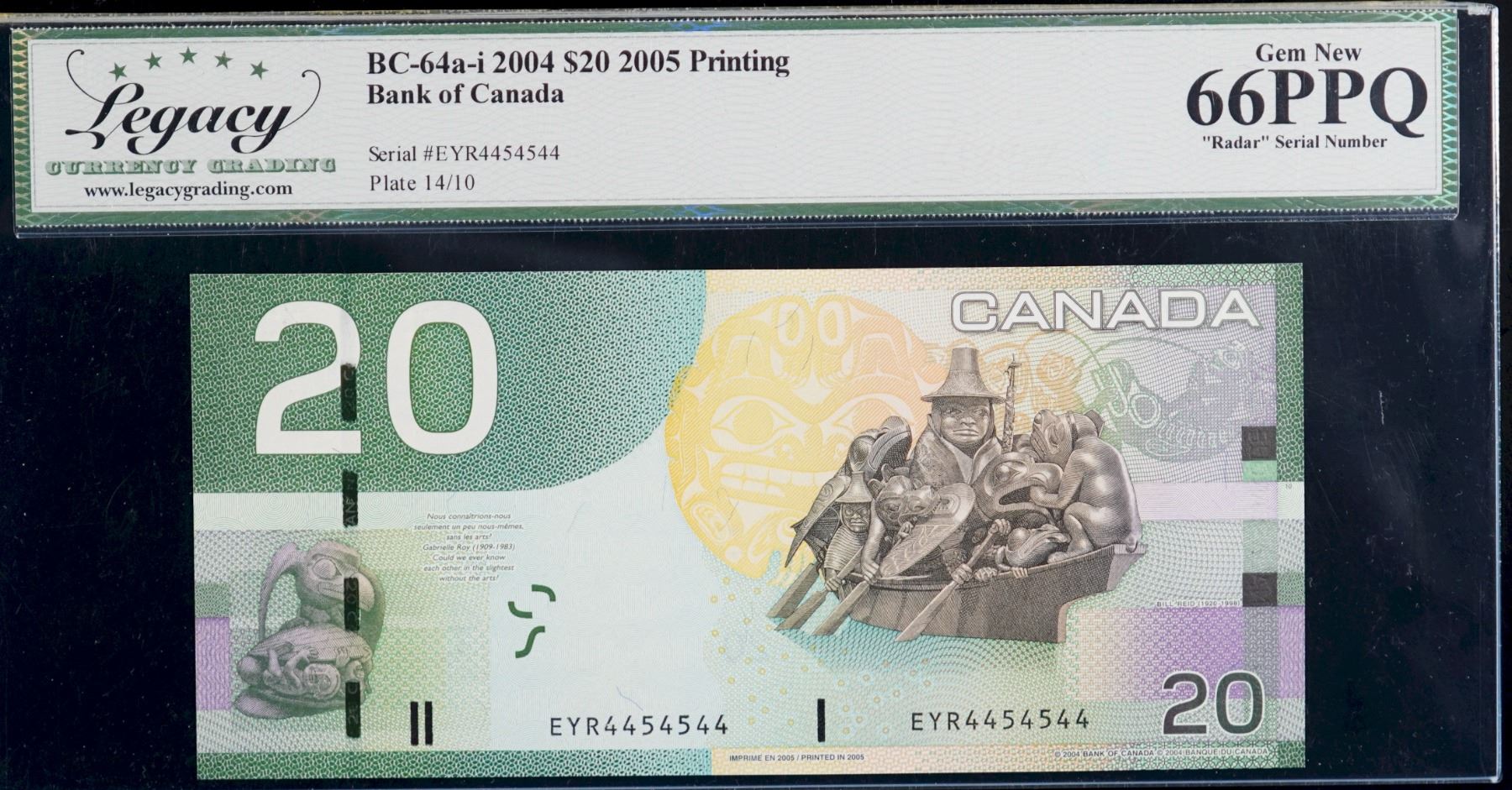 Radar; 2004 $20 BC-64a-i 2 Digit Radar #EYR4454544 Legacy Superb Gem Uncirculated-66PPQ.