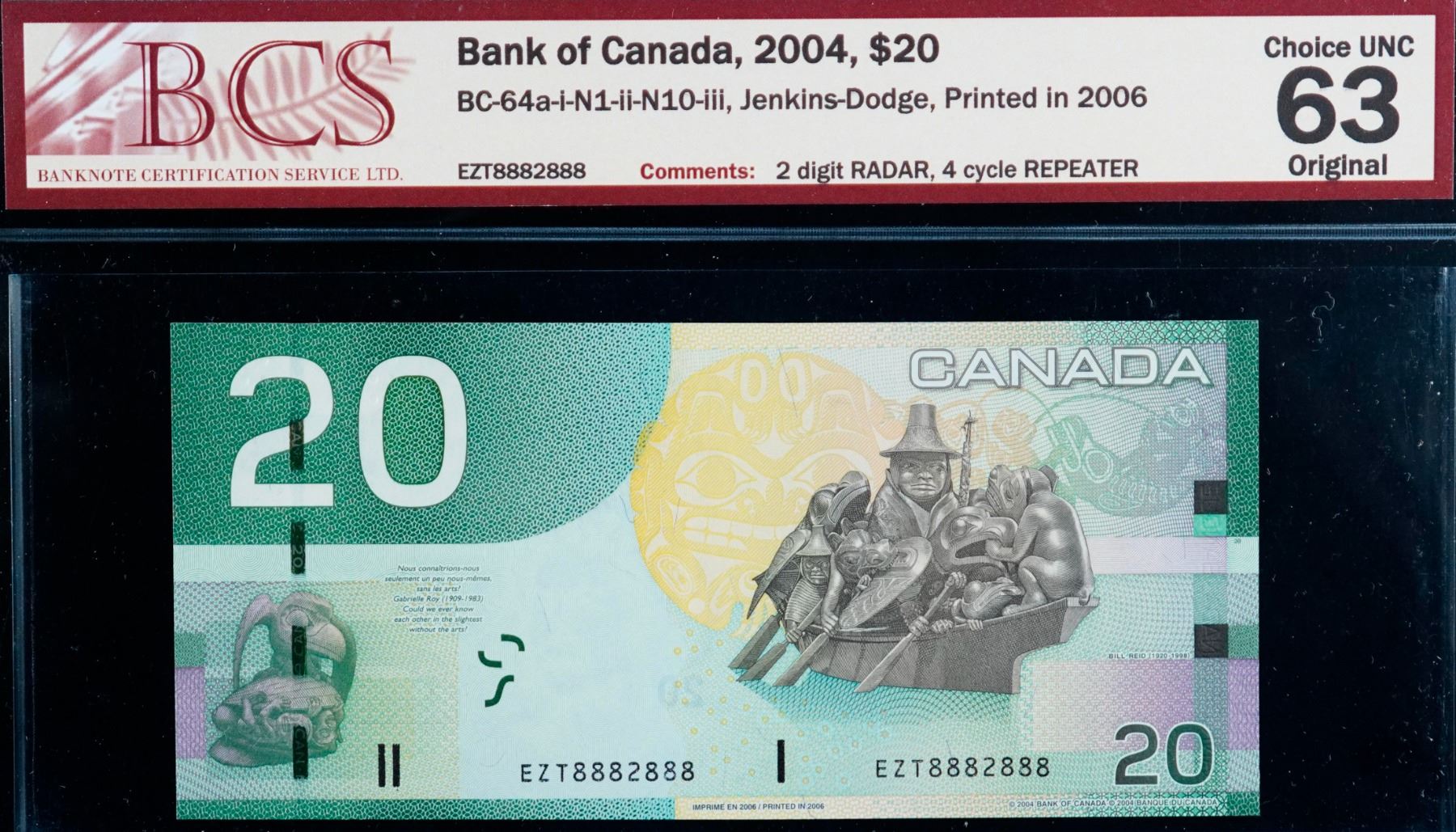 Radar; 2004 $20 BC-64a-i 2 Digit Radar #EZT8882888 BCS Choice Uncirculated-63.