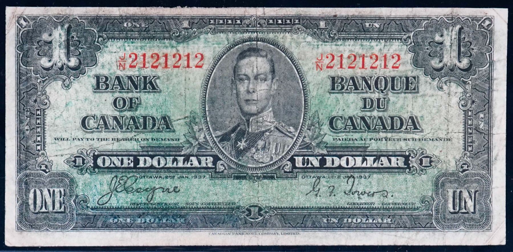 Radar & Repeater; 1937 $1 BC-21d #J/N2121212 FINE, Pressed. "Radar & Repeater" Pretty Cool!