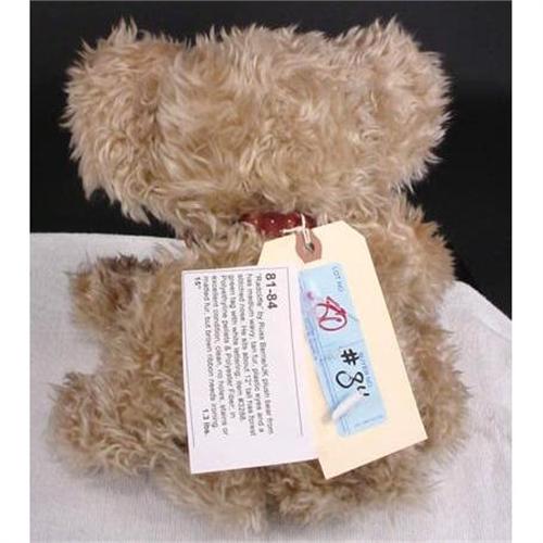 Radcliff by Russ Berrie of England ,this little bear has wavy tan fur with plastic eyes and a stitched nose. He is 12" tall with a green tag with white lettering # 3288 in very good condition aprox 1Lb. [84]