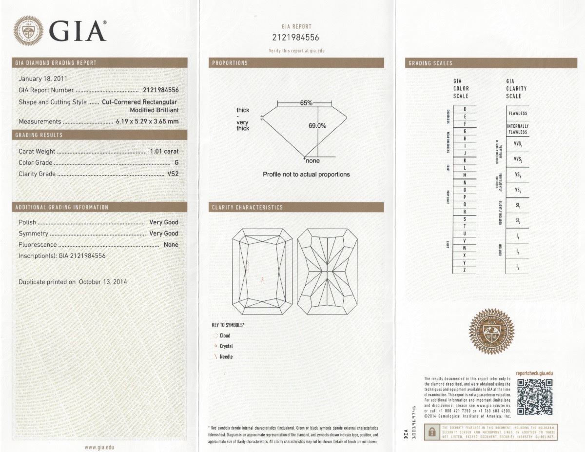 This Radiant Cut Diamond is 1.01ct., VS2, G. GIA CERTIFIED!!!