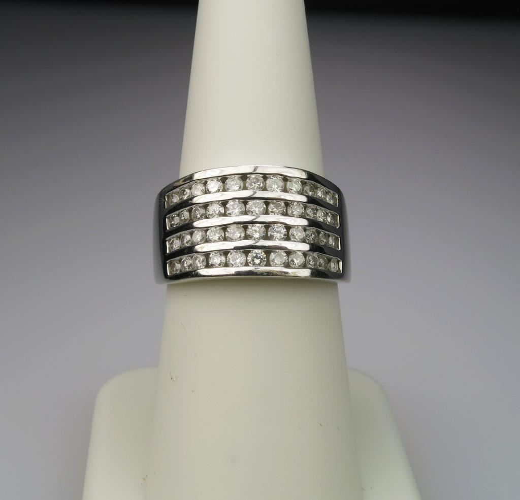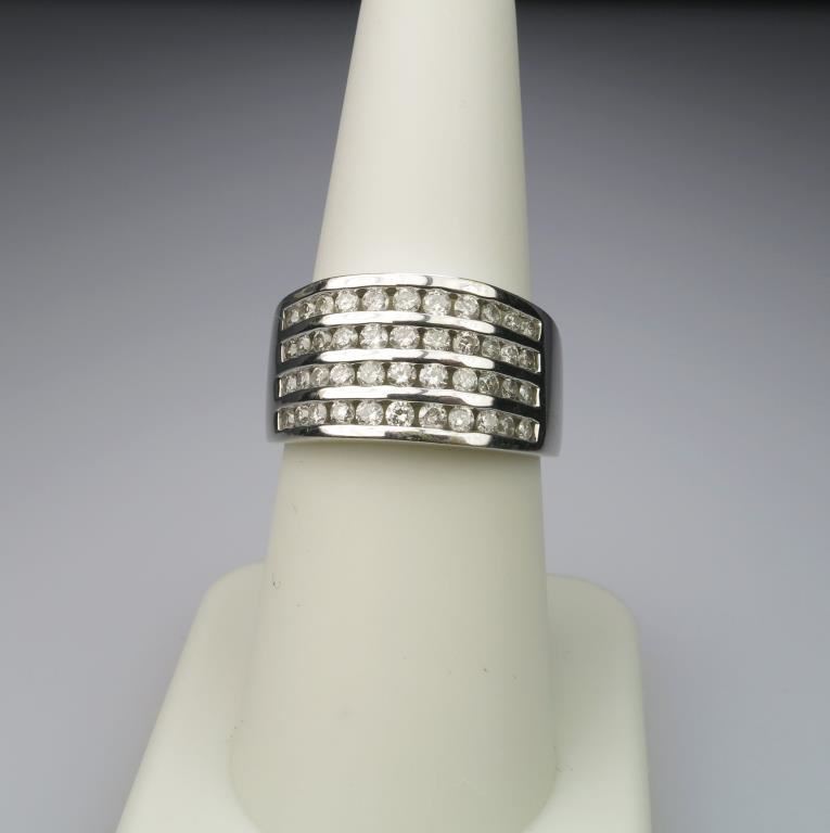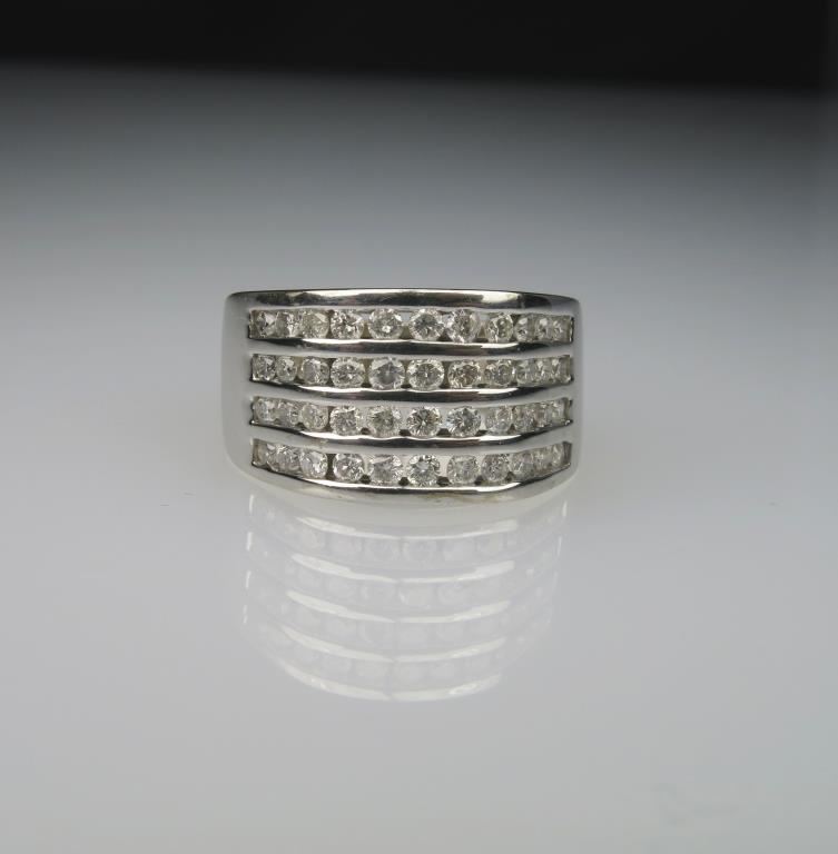 44 round cut channel set Diamonds weighing approx 1.00 plus with G-H colors set in 14 karat white gold.
