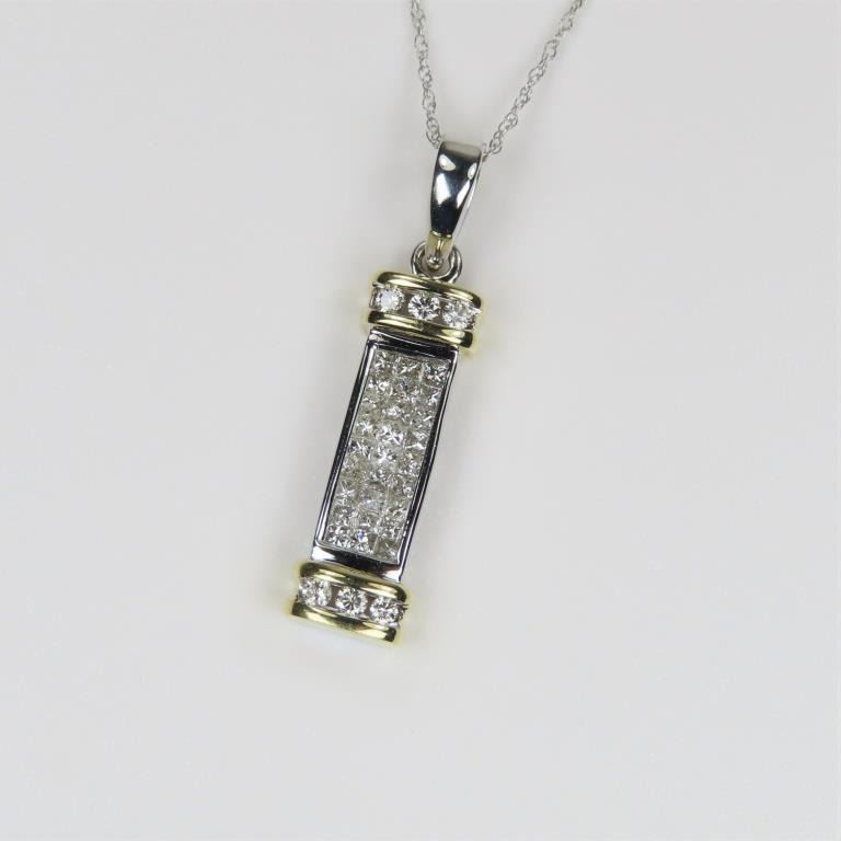 set Princess and 6 round cut Diamonds weighing approx. 0.80 carats with G-H colors and VS clarity set in 14 karat yellow and white gold.