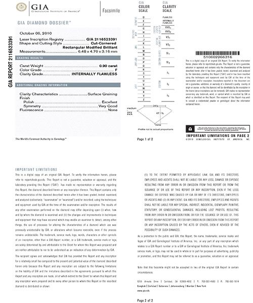 Radiant Diamond0.9ct:F,VVS26.48*4.70*3.16:GIA