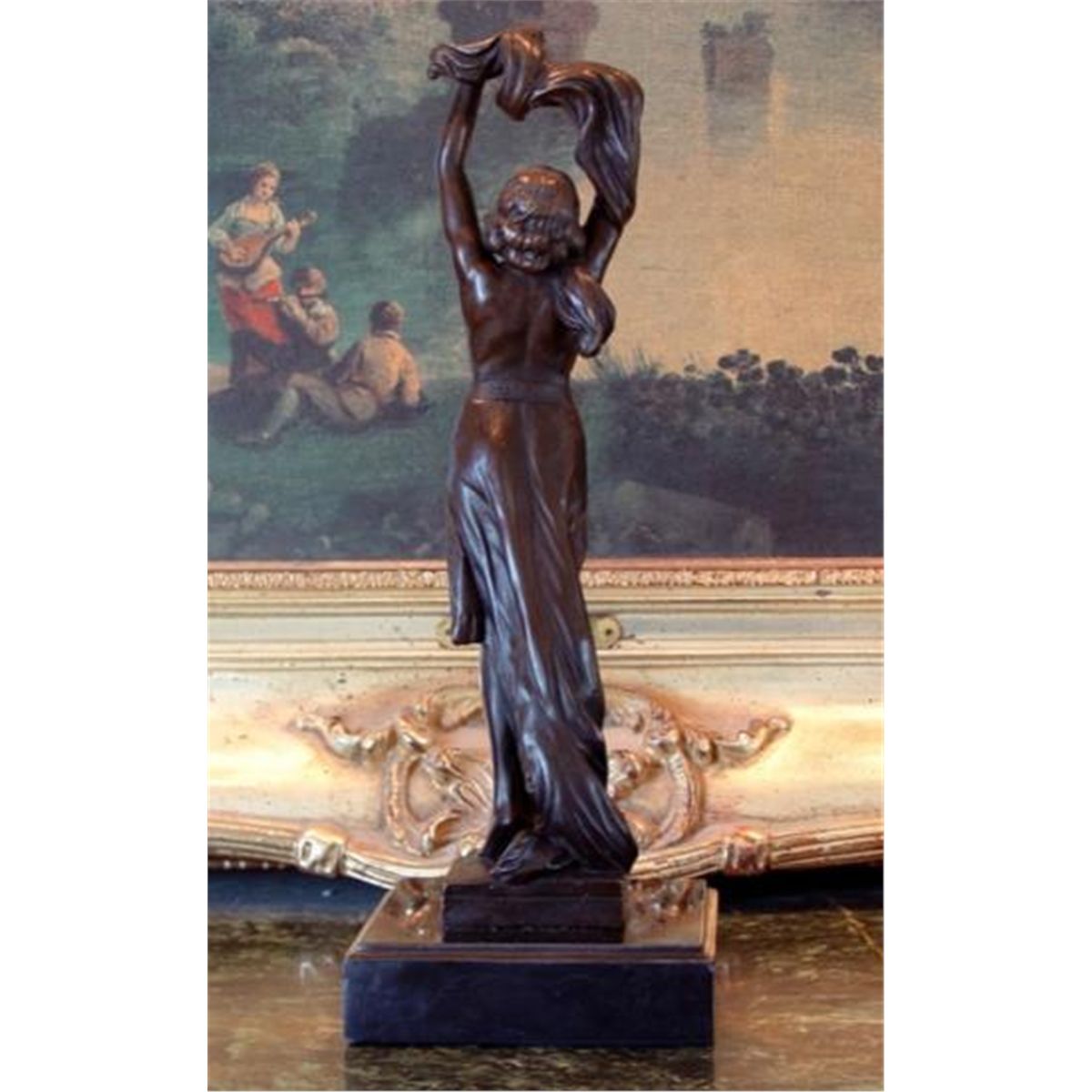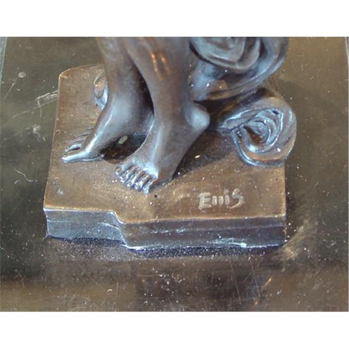Nude Dancer Bronze Sculpture, After Ellis 13"H x 5"W x 5"D 10 lbs. This bronze sculpture was produced using the "Lost Wax" casting method. The"Lost Wax" Cast method is the most precise metal casting technique in existence, ensuring exquisite detail of the original host model which is usually sculpted in clay or wax. This "Lost Wax" casting method is an extremely labor intensive and expensive process, but the end results produce a Heirloom Quality Masterpiece!