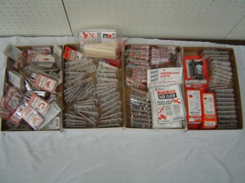 2 GPMQ4275 1 1/4 x 1/8 bolt-on axle shafts for aluminmumlanding gear, 2 GPMQ3140 #8x1: bolt-on head sheet metal screws, 2 GPMQ3890 Servo saver system, GPMQ4000 small pivot point hinges 6 pc, GPMQ4001 small pivot point hinges 15 pc, 2 GPMQ4022 other assorted Great Planes hardware, Topflight TOPR2185 monokote tack cloth 18-36, Great Planes GPMR8055 50pc Mixing sticks (popcycle), GPMR8014 4.0 mm hex driver ballwrench for 5.0mm socket, GPMQ4003 Large pivot point hinges 15pc, GPMM1088 Prosplilce quick solder tubes .230 ID, GPMR8110 and other Great Planes Assorted hardware,Great Planes GPMR1058 fiberglass tape 4"wide 5' long, Hobbico fiberglass cloth 2 oz meduim 1 sq yard, Topflite TOPR2185 monokote tack cloth, Great Planes GPMQ3340 256 nylon insert lock nuts 4 pc, GPMQ3044 4-40 nylon insert lock nuts 4 pc, 2 GPMQ3300 256 other assorted Great planes hardware, Great Planes GPMQ1041 small adjustable enginw mount, GPMQ4101 4 oz fuel tank, GPMQ4102 6 oz fuel tank, 2 GPMM1088 Pro splice quick solder tubes, GPMQ4162 fueling probe, GPMQ4275 1 1/4 x 1/8 bolt on axle shafts, 2 GPMQ4278 2"x3/16 bolt on axle shafts,other assorted Great Planes hardware