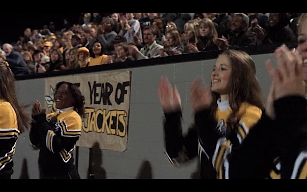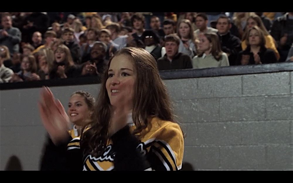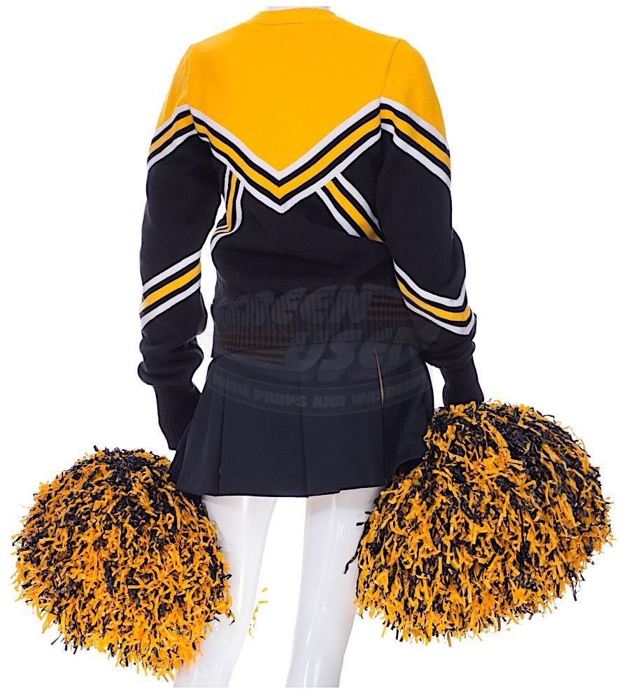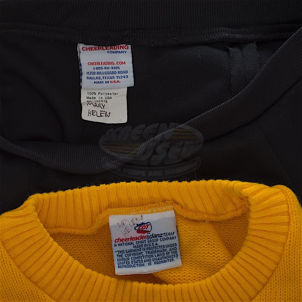 (Revolution Studios, 2003) This cheerleading uniform was acquired by the production for use by Sarah Drew as "Mary Helen". The uniform consists of a yellow, black and white sweater with "Jackets" across the chest, a black and yellow skirt, a pair of black panties and a set of yellow and black pom poms. The sweater and skirt have "Mary Helen" written on the inside. In addition to our ScreenUsed COA, this costume comes with a Revolution Studios COA confirming its use during filming.