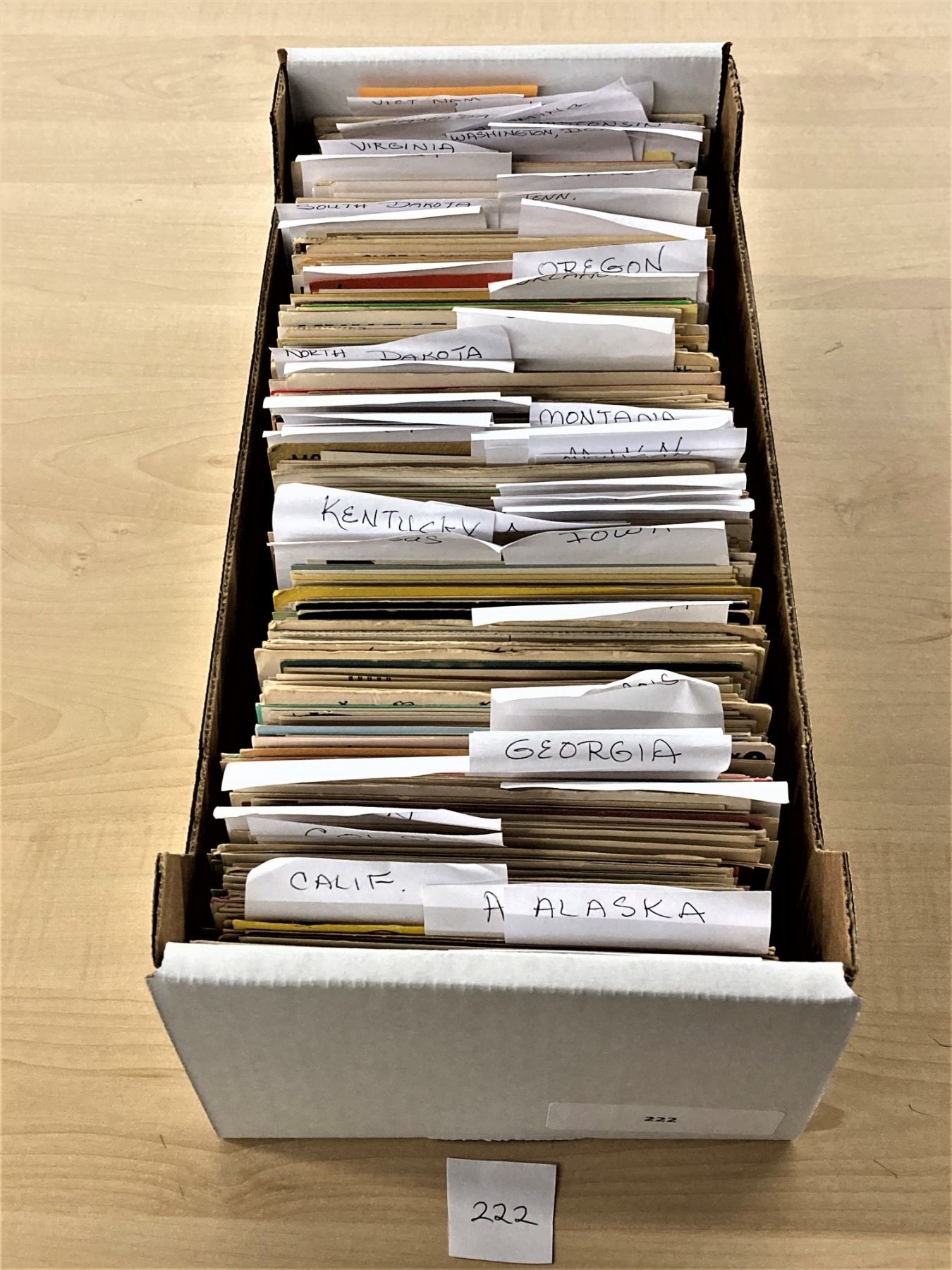 Sorted box Alabama to Wyoming. Small amount international. Many small towns. 550+