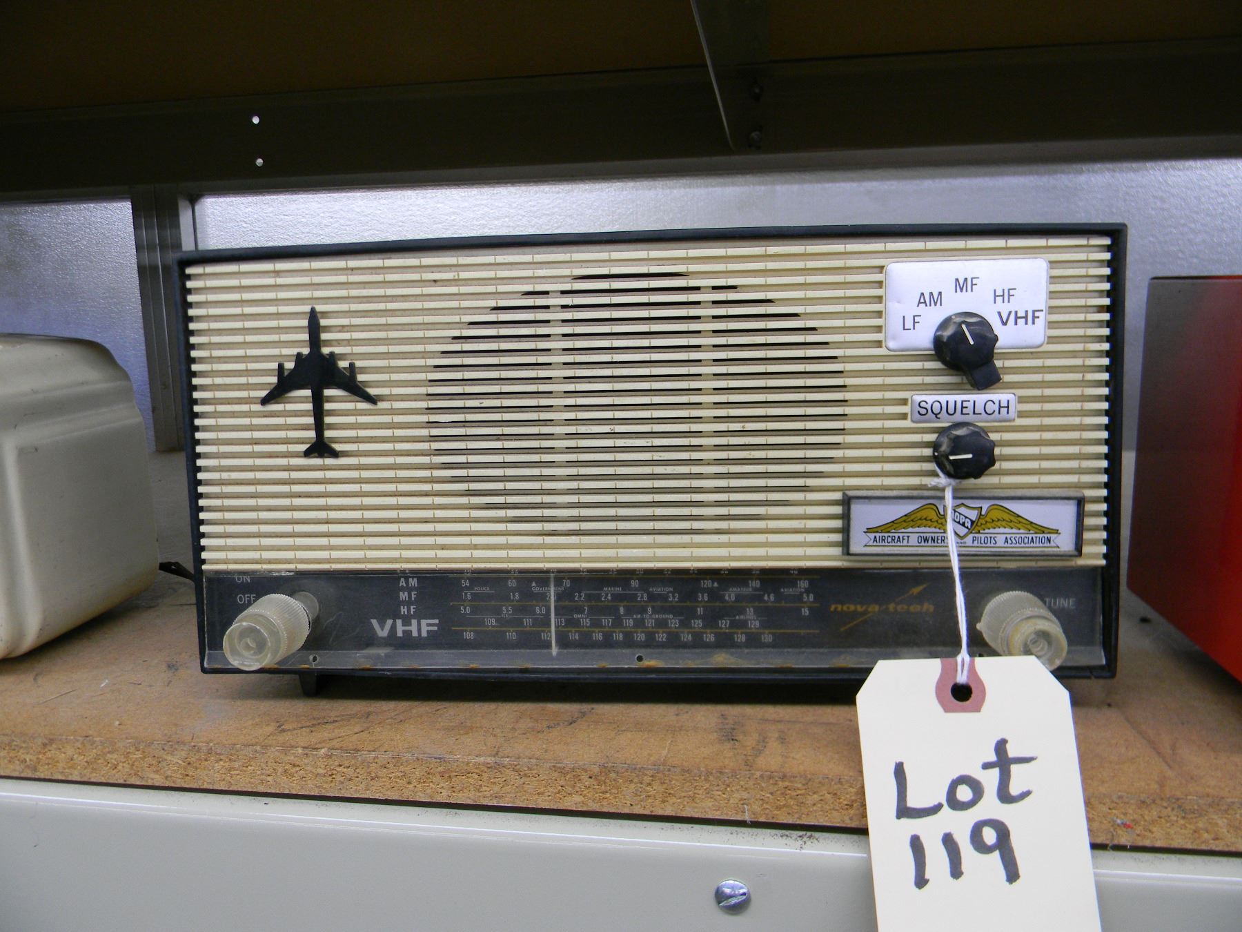 Nova-Tech table radio with AOPA tag on front of this multi-band radio includes aircraft VHF coverage; no power cord