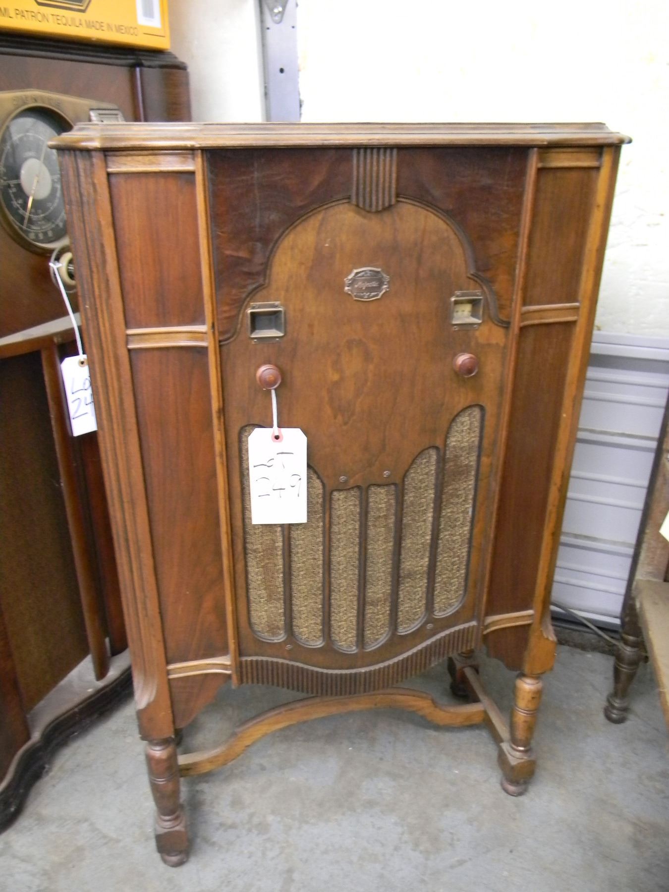 Majestic console model 493; This is a 32 volt radio intended to be run on Delco plants prior to REA