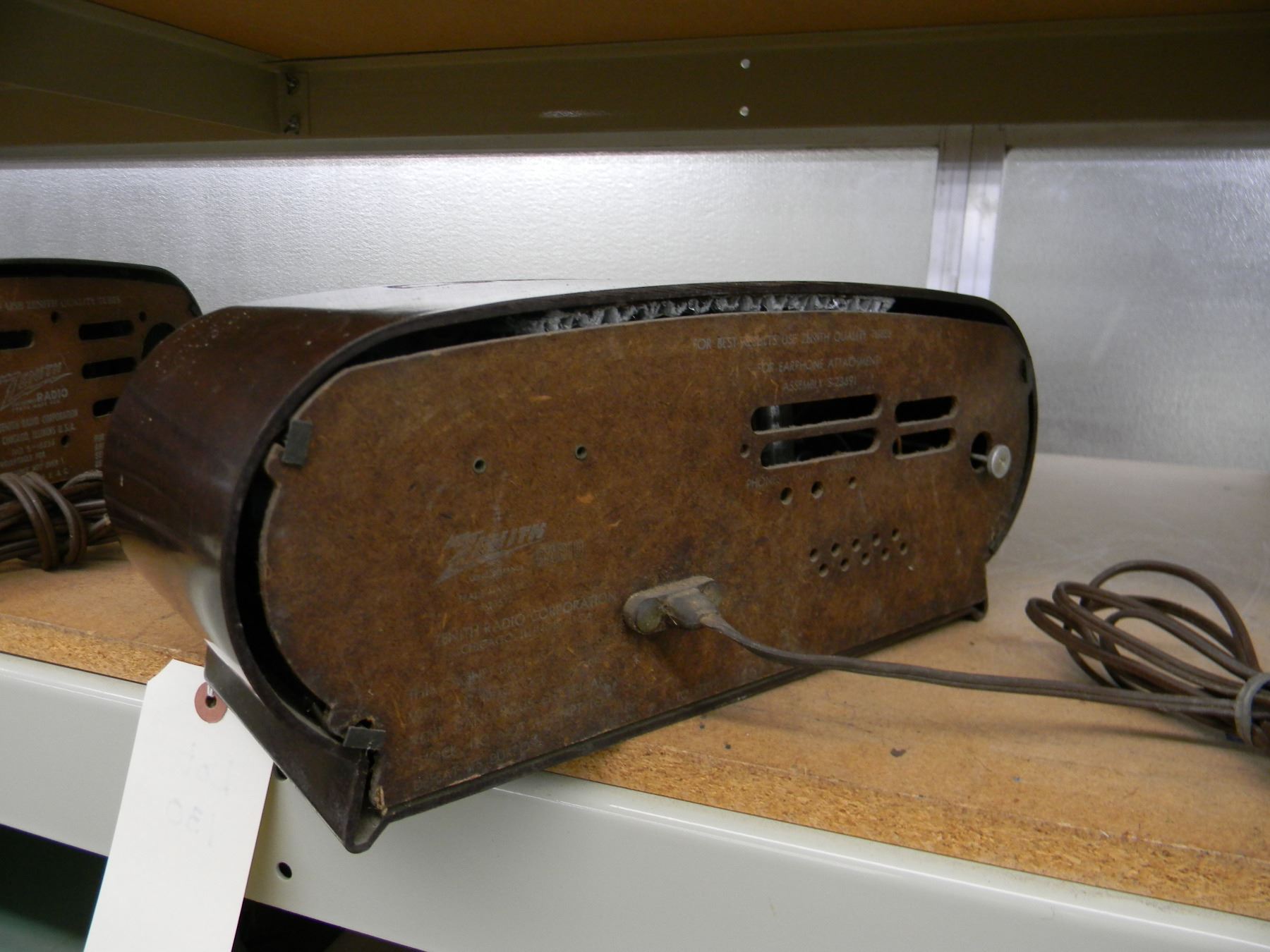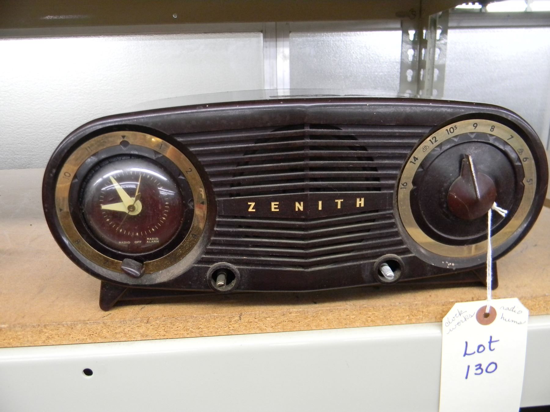 Zenith Deluxe brown clock radio; clock works, radio hums