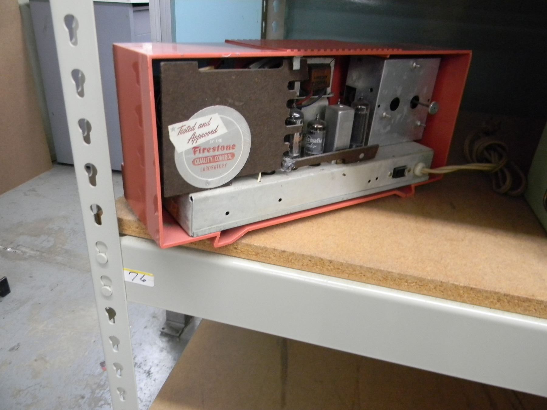Firestone clock radio with CD markings on dial; model 4A92; has small crack on back bottom, works